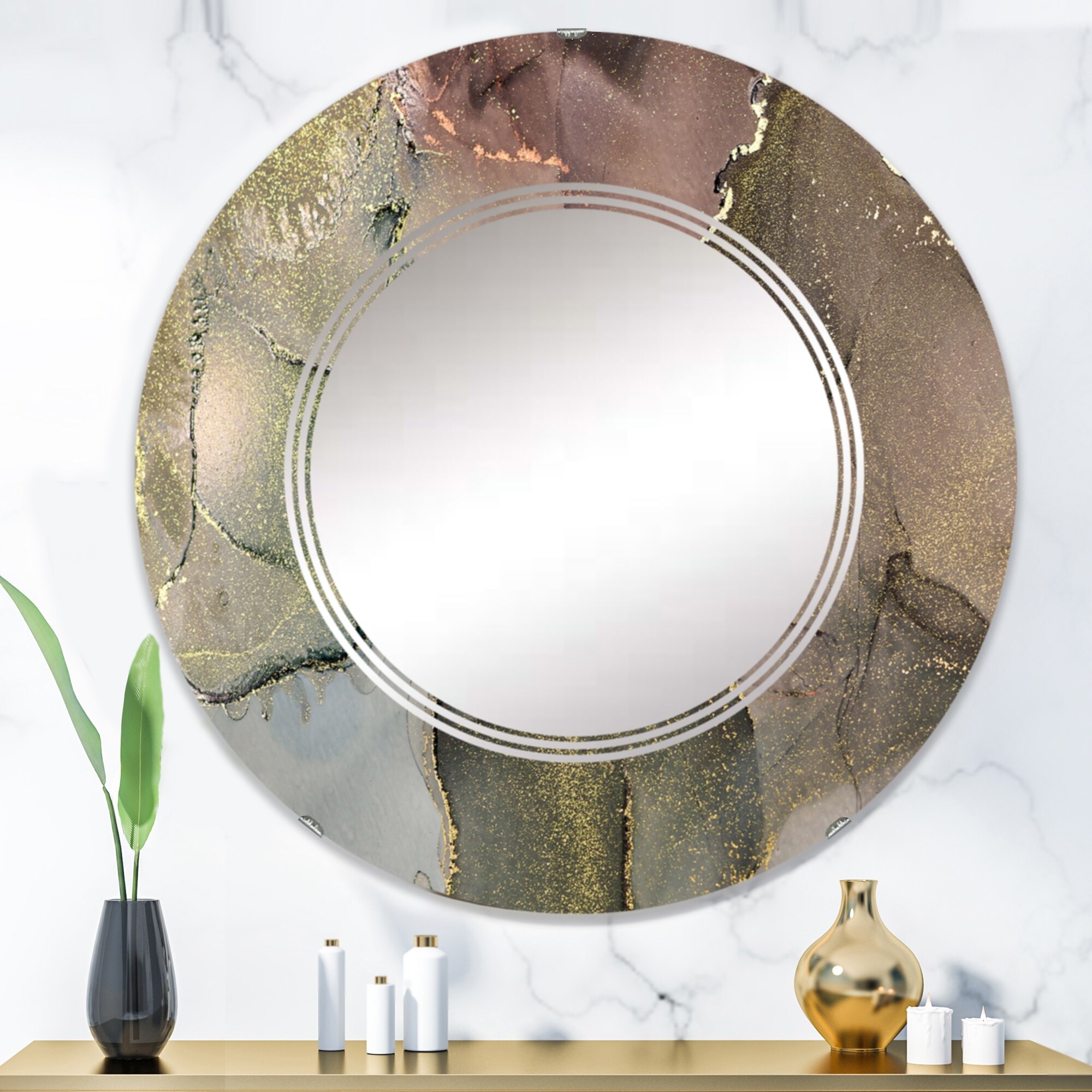 Designart 'Grey And Green Liquid Art I' Printed Modern Wall Mirror