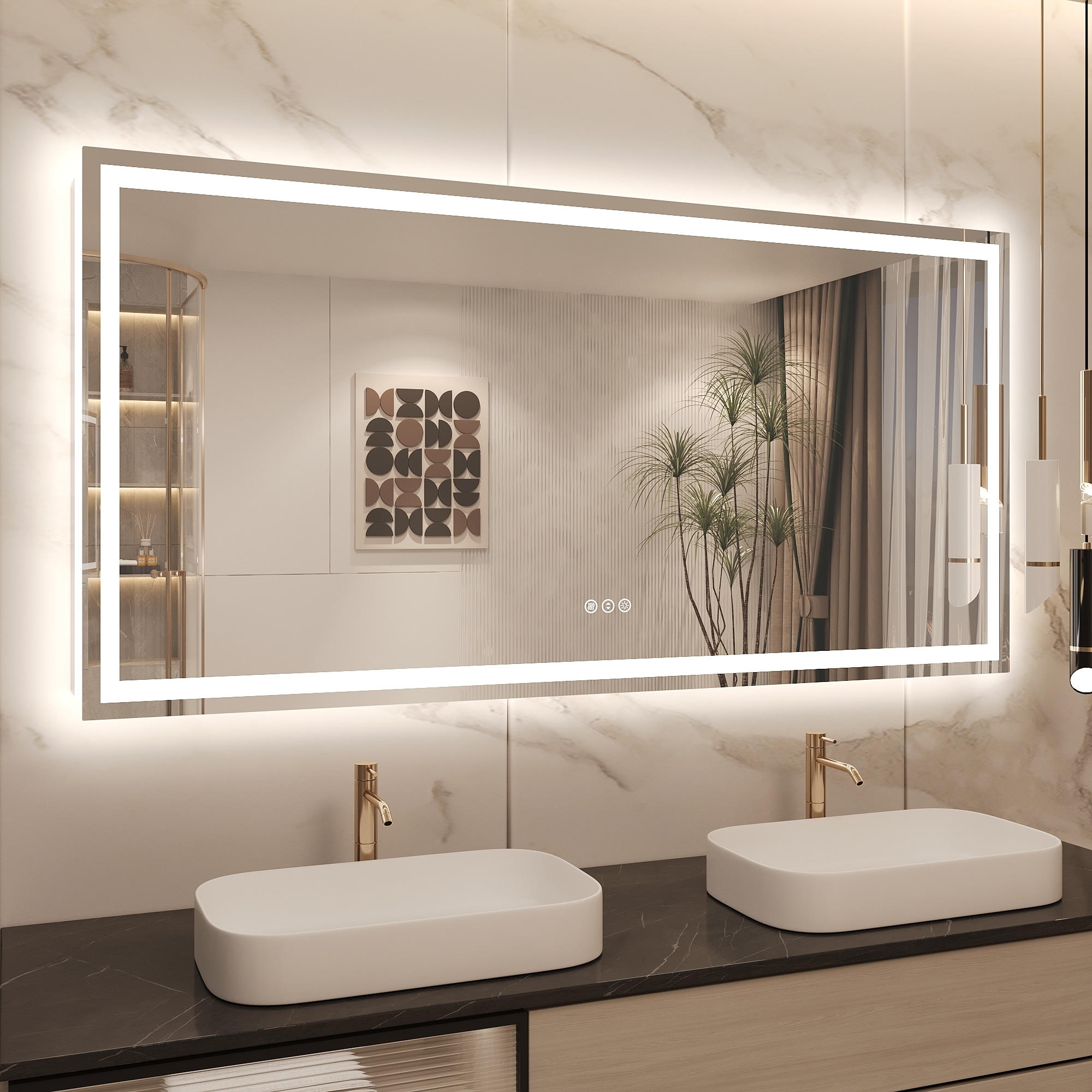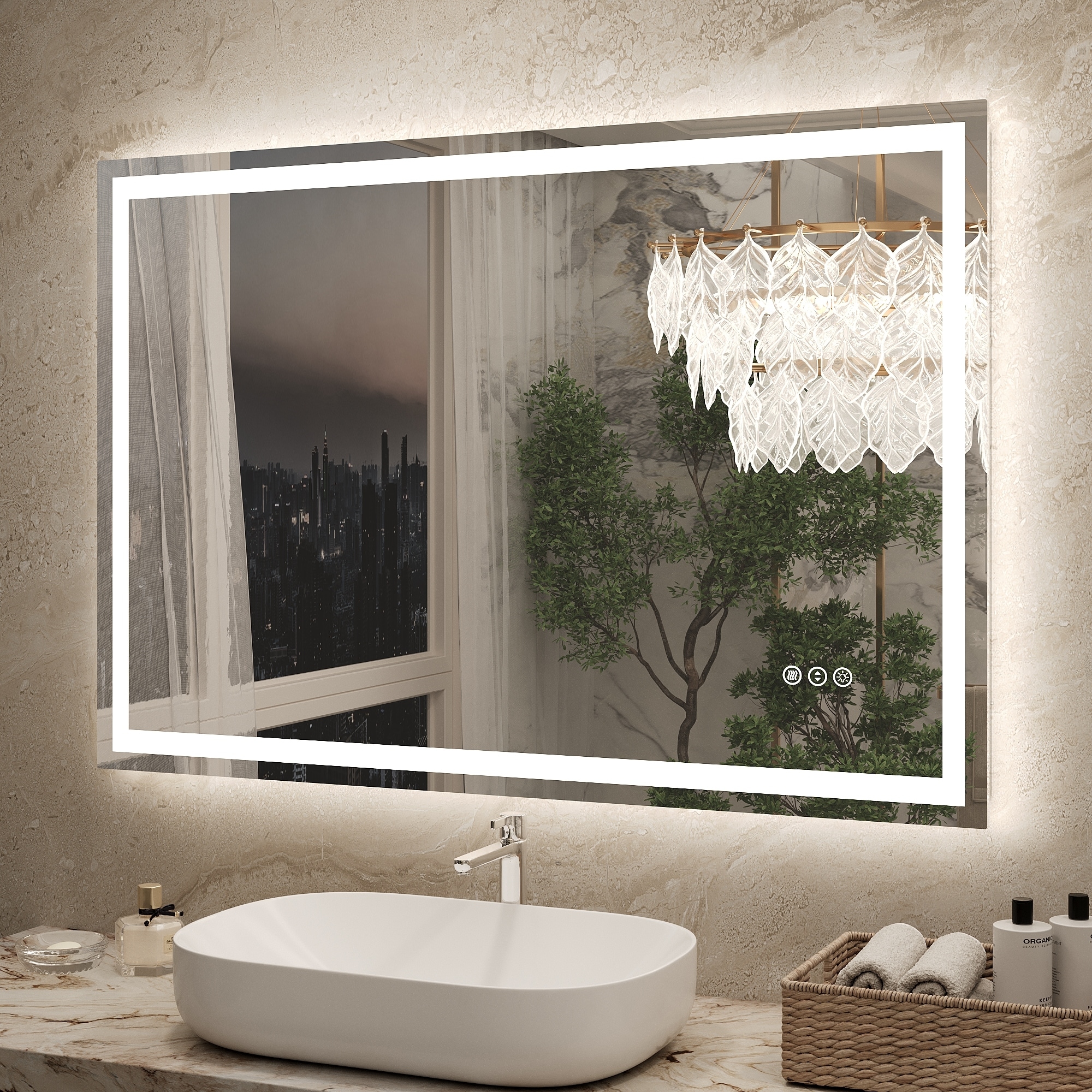UL Certified Frameless LED Front Light and Backlit 3 Colors Dimmable Anti-Fog Wall Bathroom Vanity Mirror