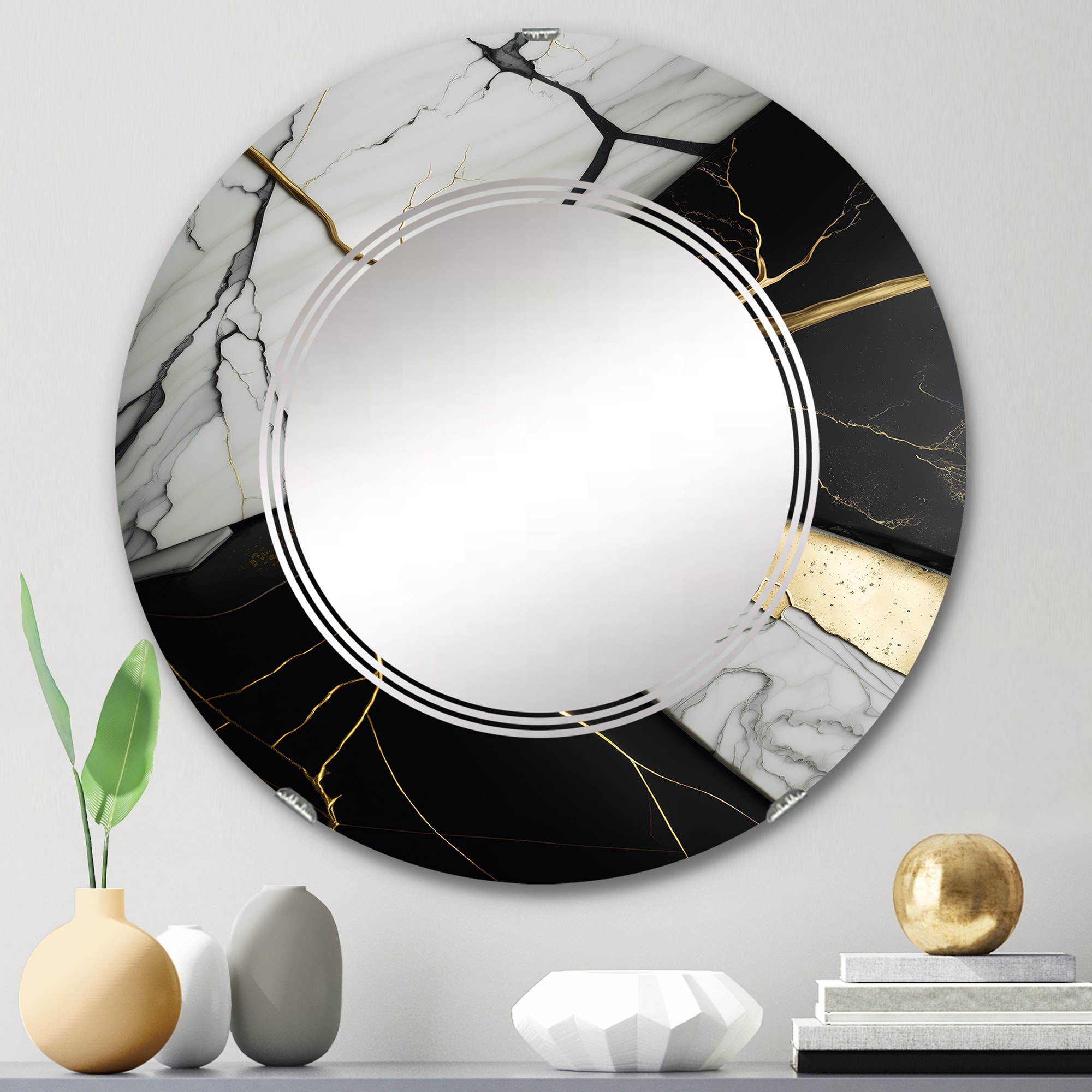 Designart "Minimalist Black and White IV" Abstract Shapes Round Mirror Wall Decor - Modern Black Mirror