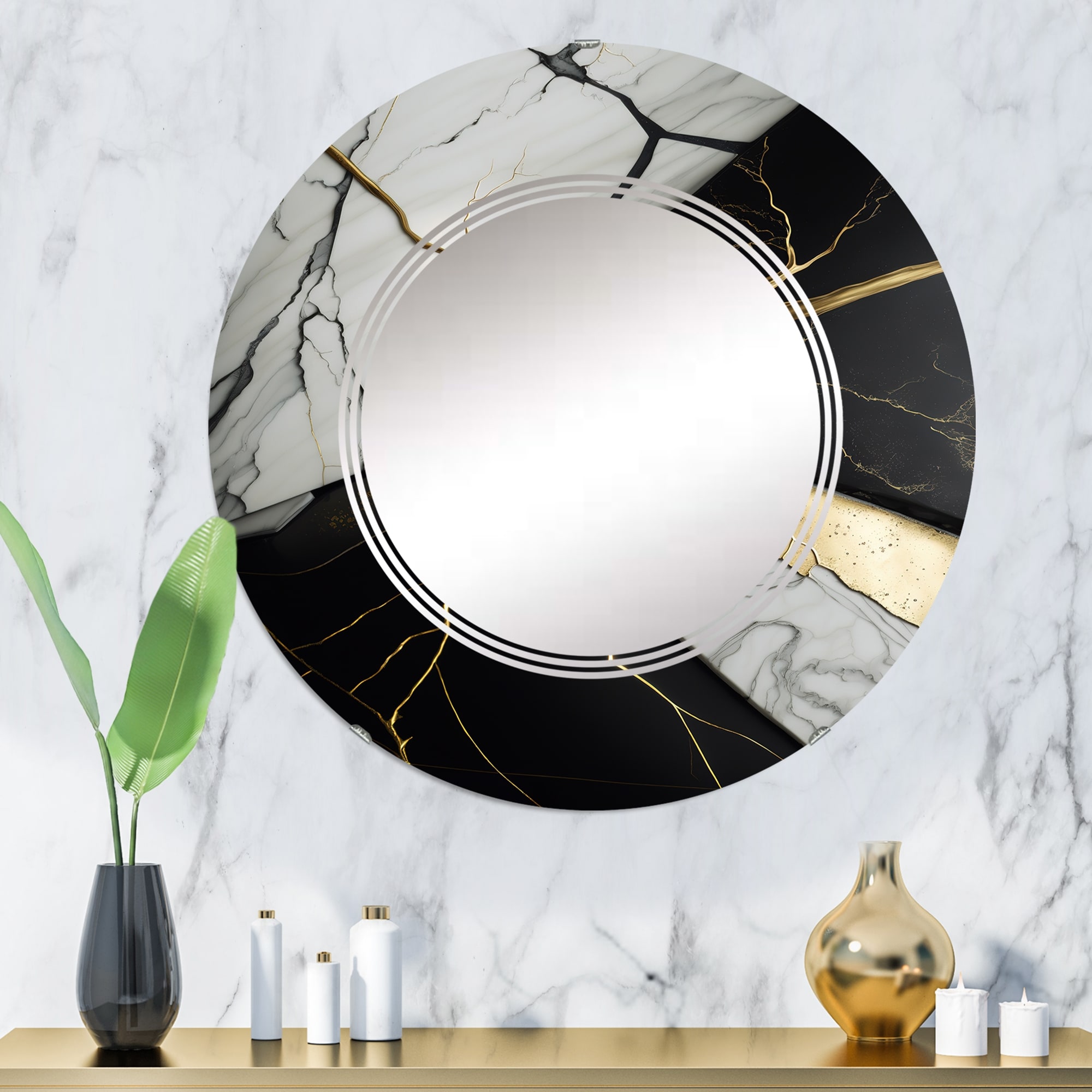 Designart 'Abstract Geode Black IV' Printed Abstract Marble Wall Mirror