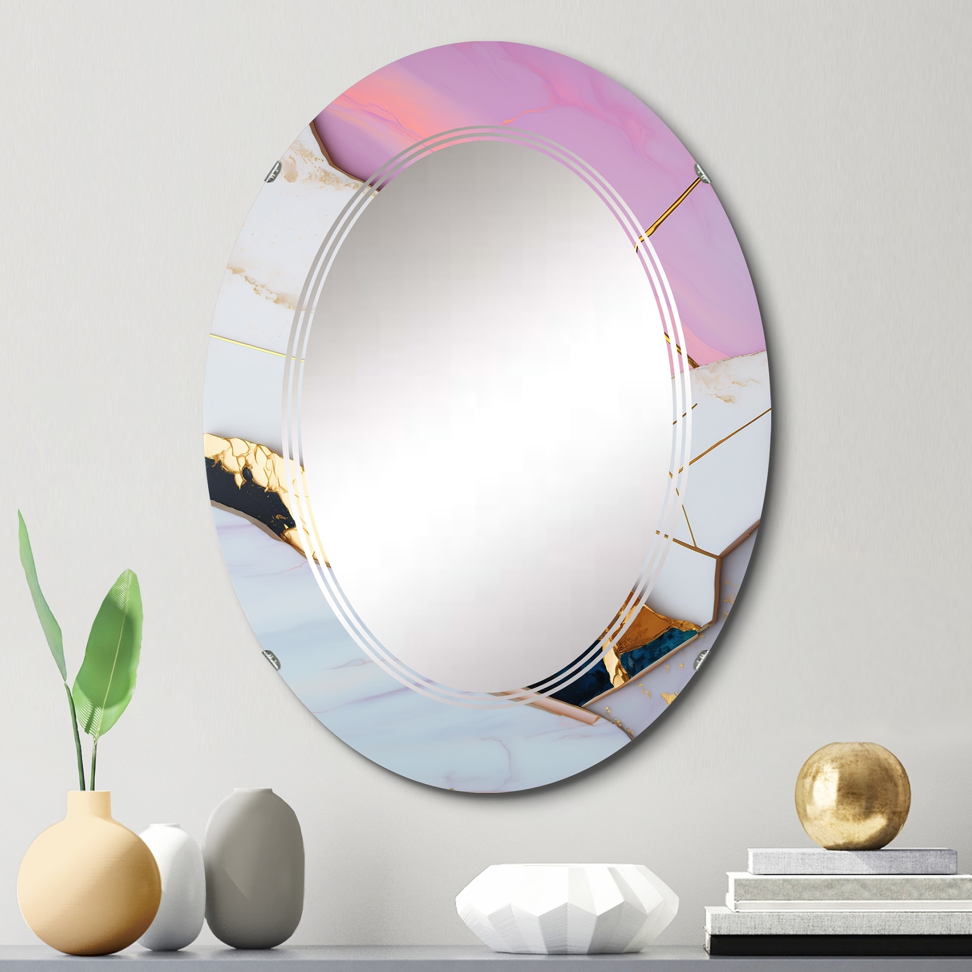 Designart 'Abstract Geode White III' Printed Abstract Marble Wall Mirror