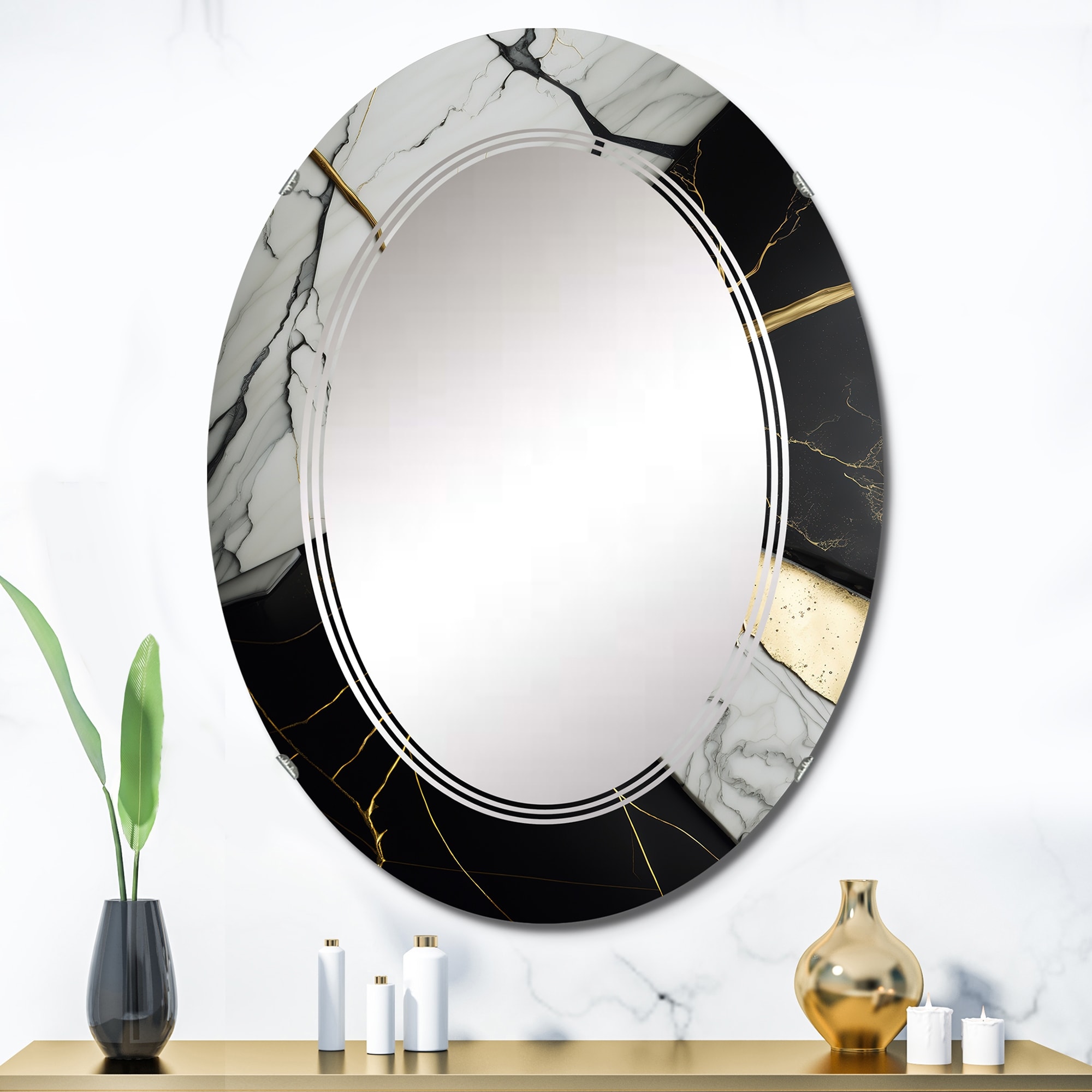 Designart 'Abstract Geode Black IV' Printed Abstract Marble Wall Mirror