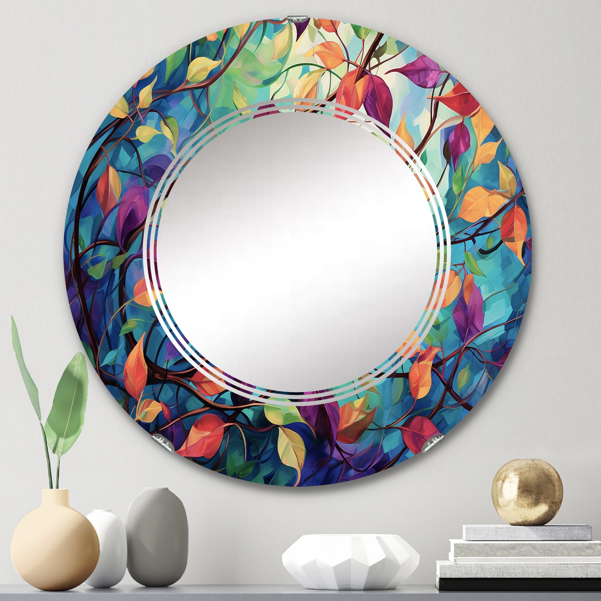 Designart "Multicolor Vibrant Vines I" Abstract Botanicals Modern Wall Mirror