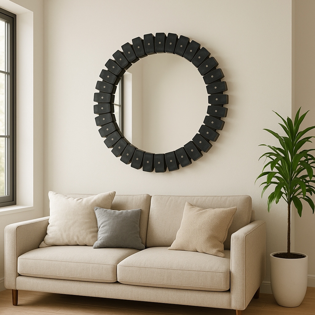 Marble Glass Round Tile Wall Mirror - Black, 35"