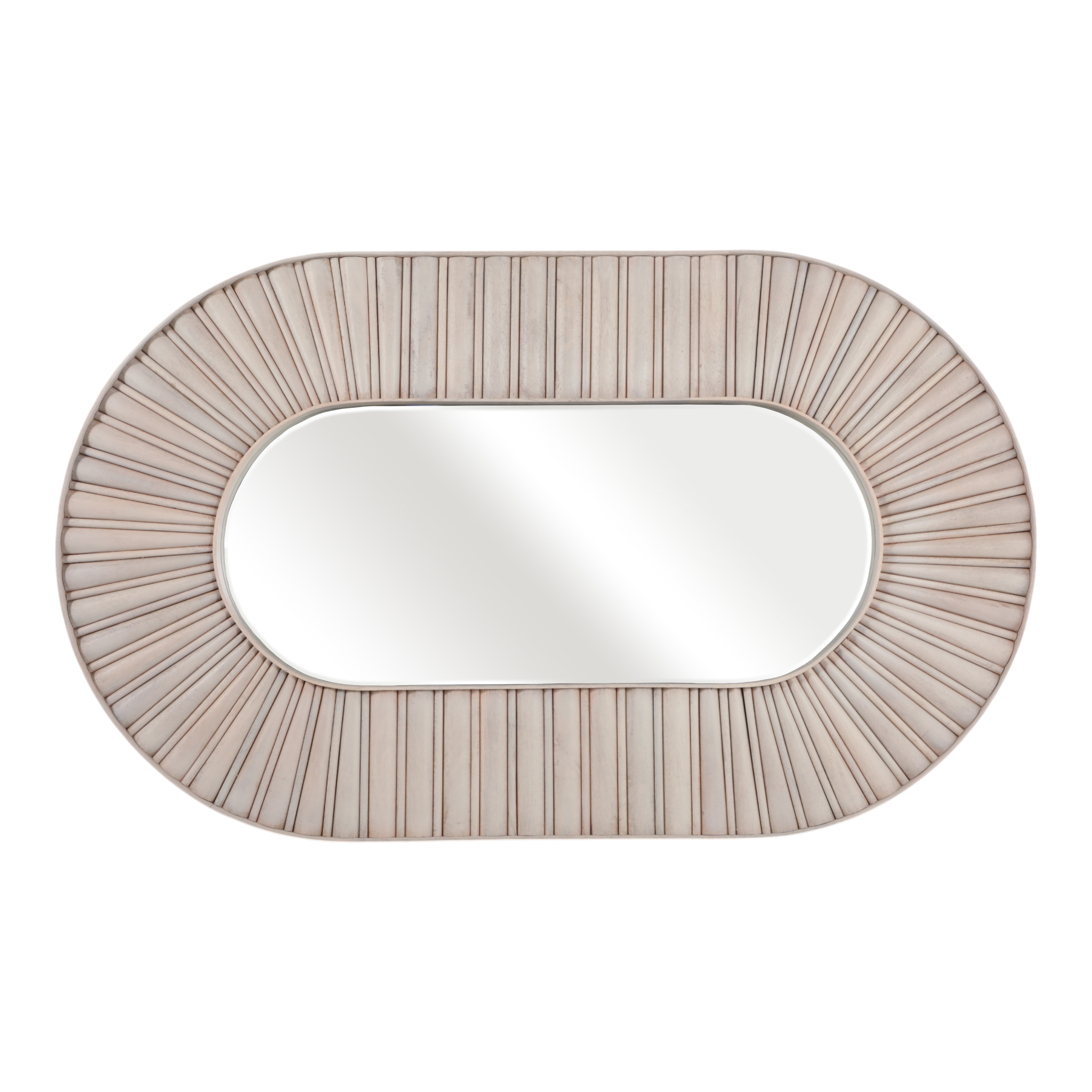 Wood Wall Mirror Modern Fluted Large Rectangular Decor - 60" White - 60" x 1.5" x 36.5"