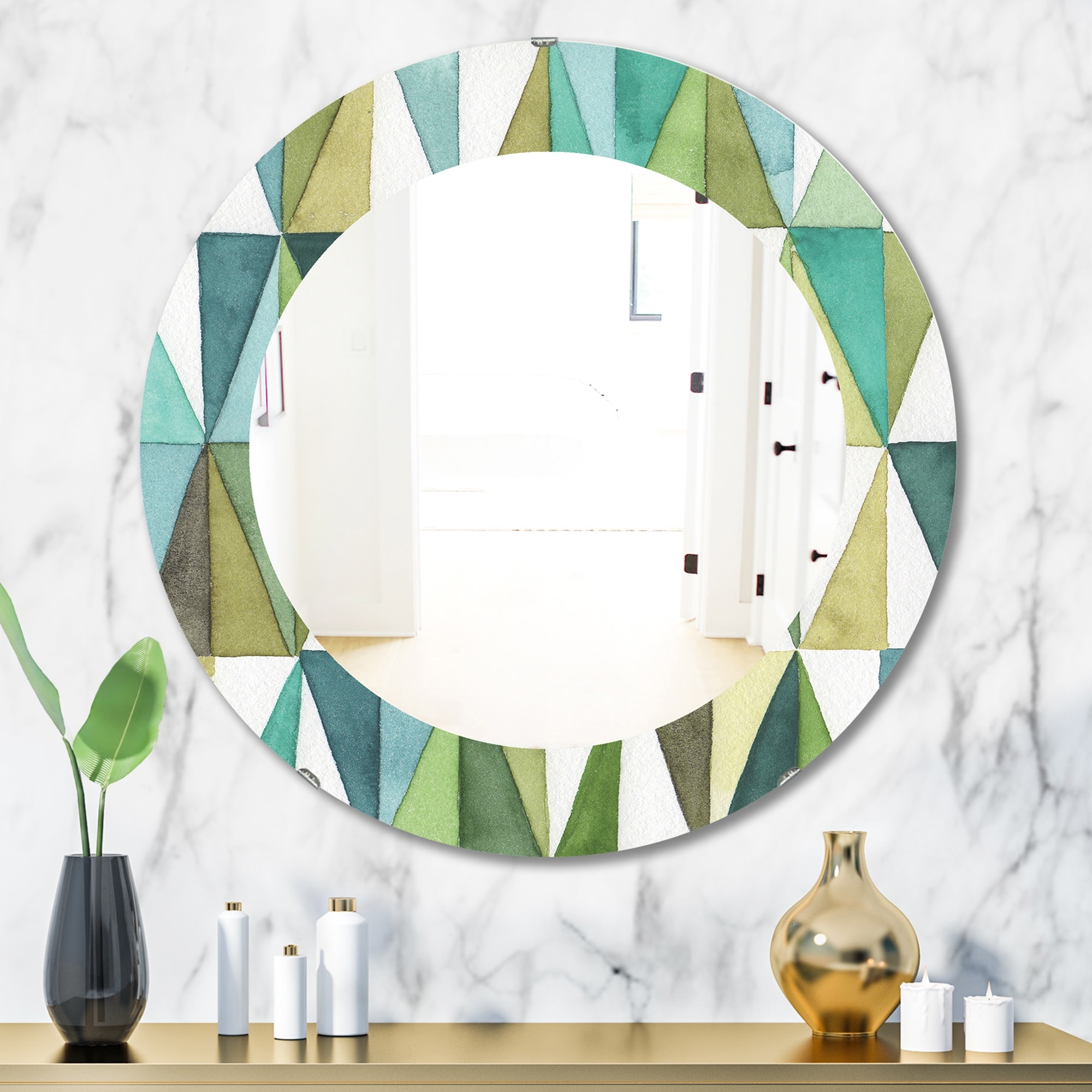 Designart 'Geometric Green Triangle III' Printed Mid-Century Oval or Round Wall Mirror