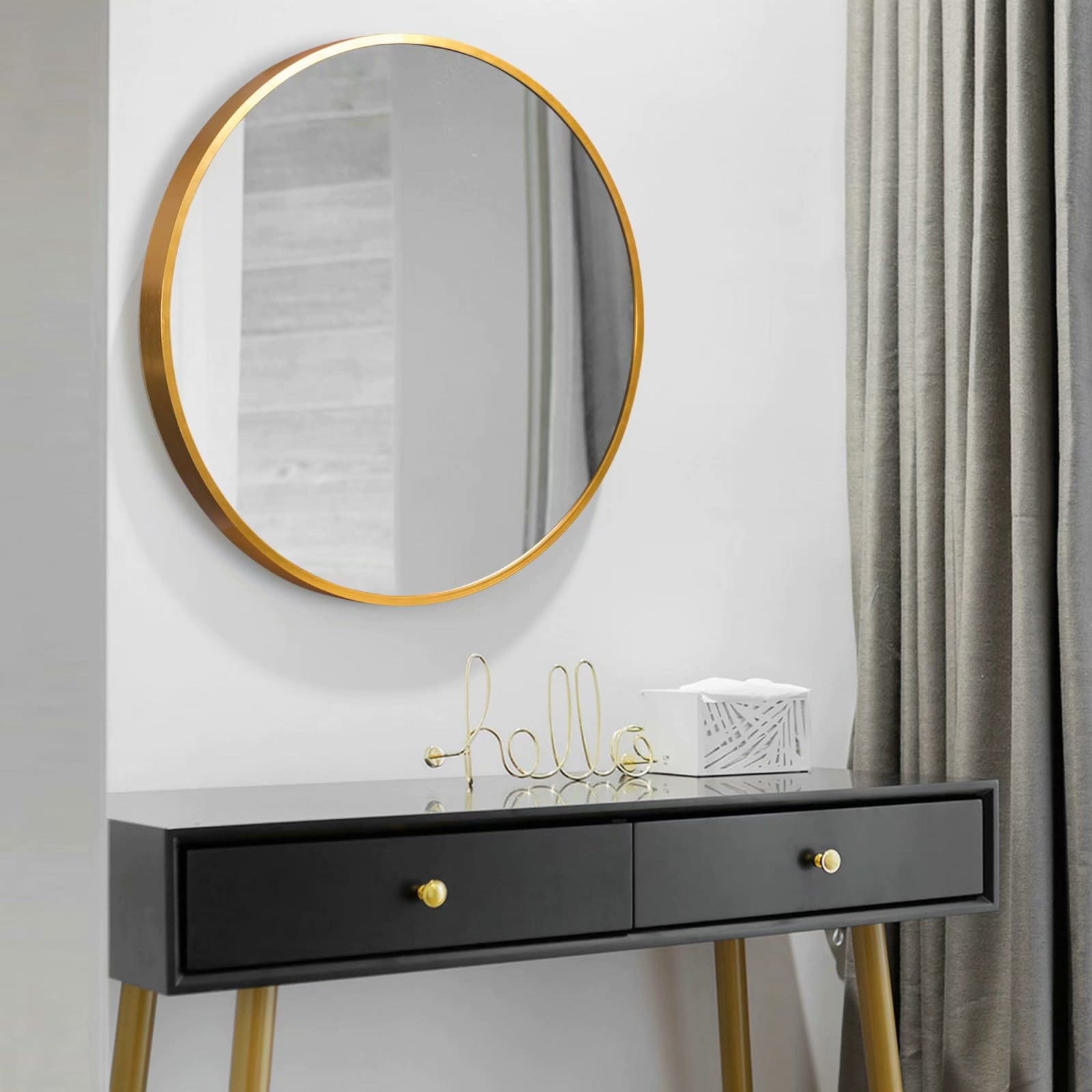 Chic Aluminum Alloy Framed Round Hallway Mirror