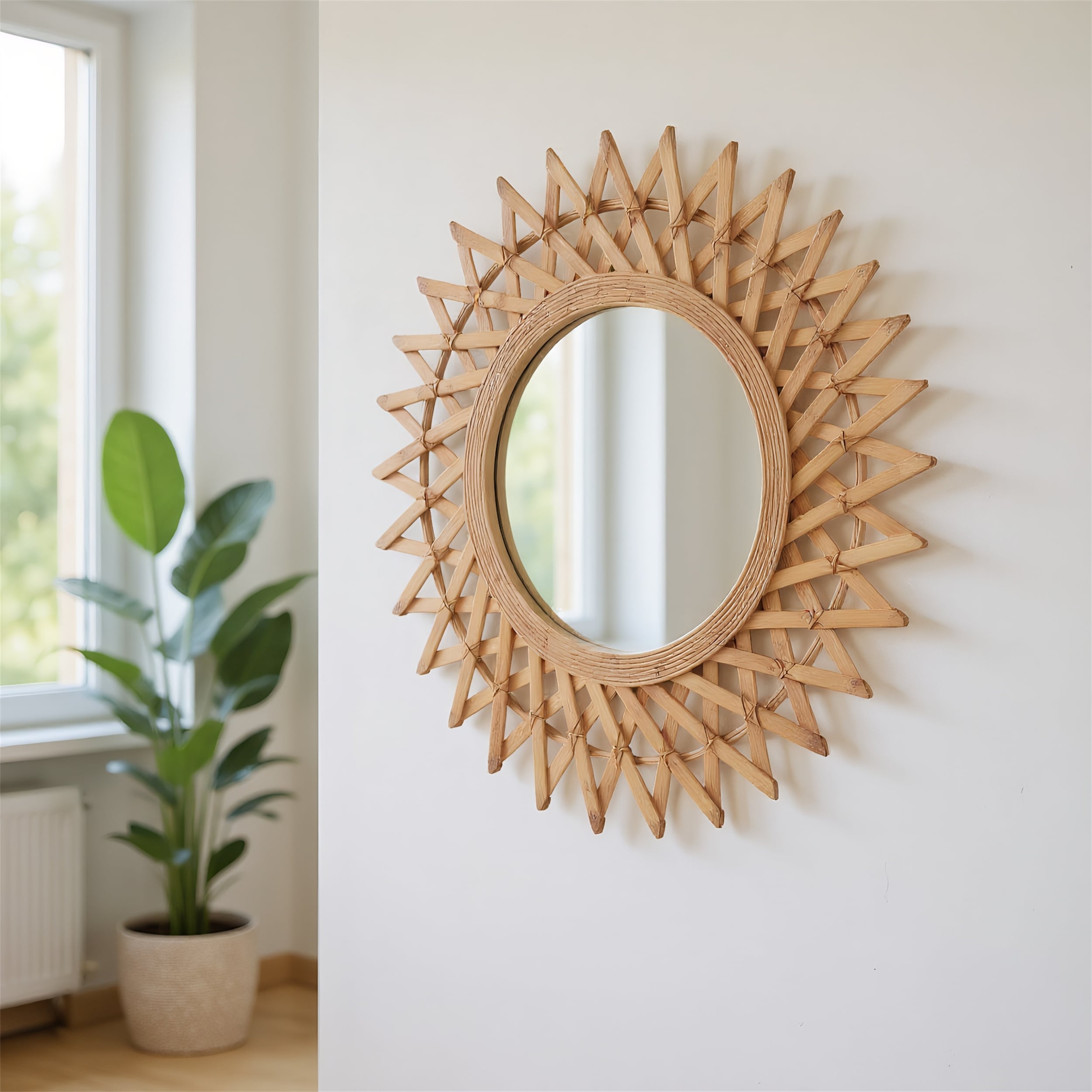 Bamboo 24 inch Woven Mirror, Natural Wall Decor with Hemp Accent