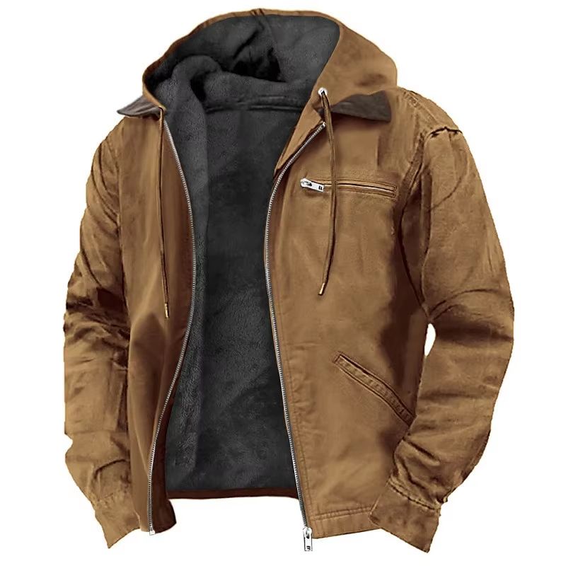 Men's Autumn Winter Fleece lined Zipper Hooded Casual Jacket gray m(us 38)