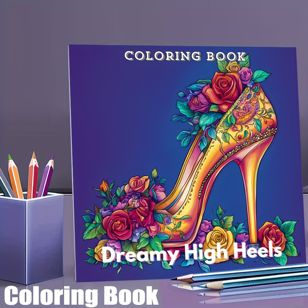 Dreamy High Heels Coloring Book For Adults, Stress Reduction Colouring, Relaxation Art Therapy, Valentine's Gift For Her style 2