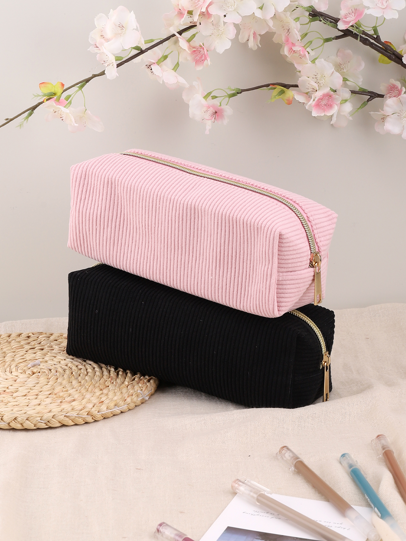 Large Capacity Pencil Case, School Supplies Stationery Bag, Solid Color Pencil Case For School black