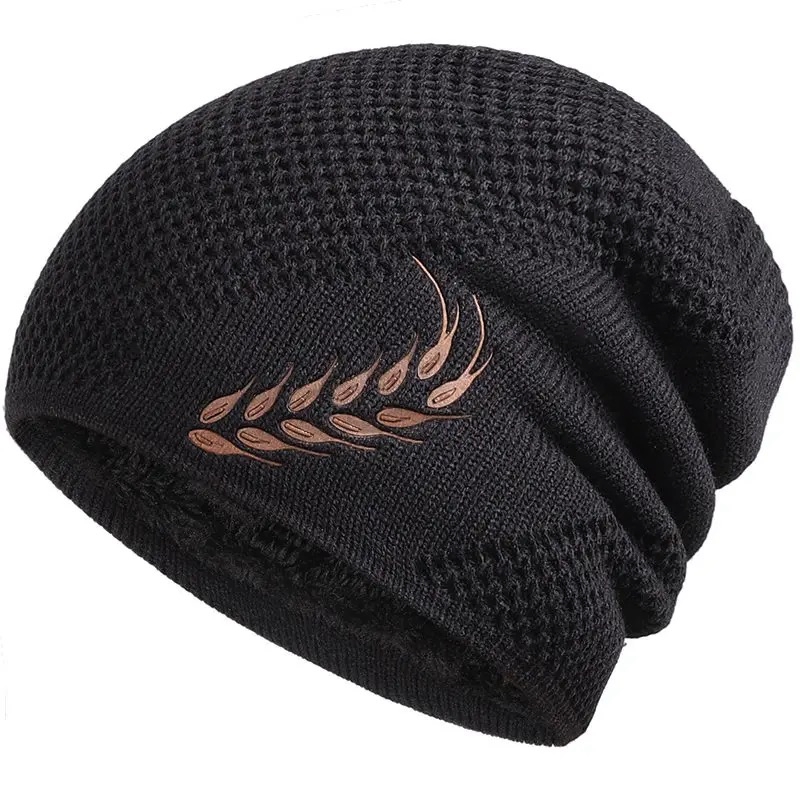 Fur Lined Thick Ski Beanie Cap, Unisex Warm Winter Beanie, Knitted Hat Men Women, Hat Fashion Wheat Embroidered gray