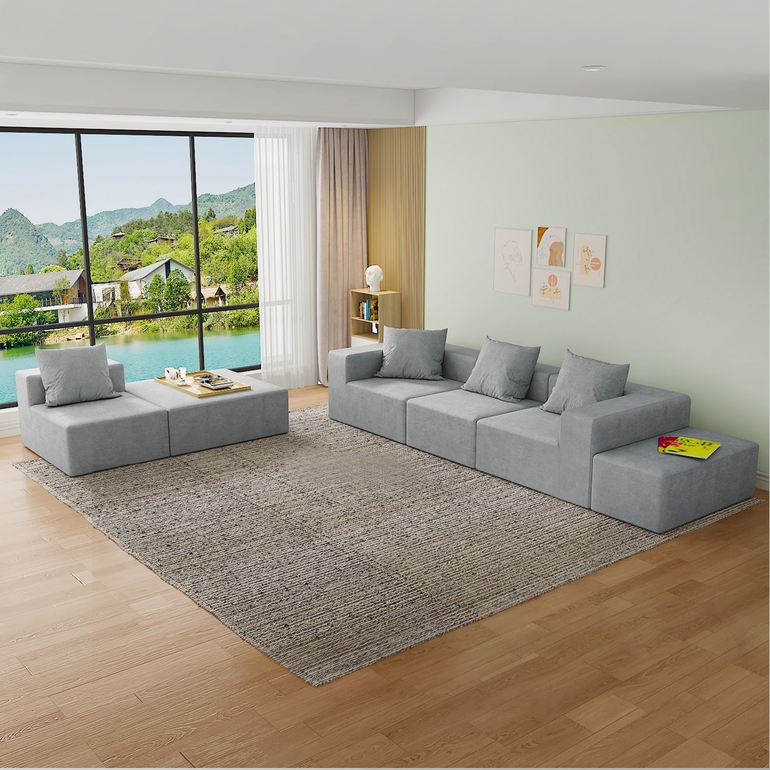 Modular Boneless Sectional Sofa Cloud Couch with Ottoman Deep Seat Chaise Sofa Oversized Combination Sofa for Living Room