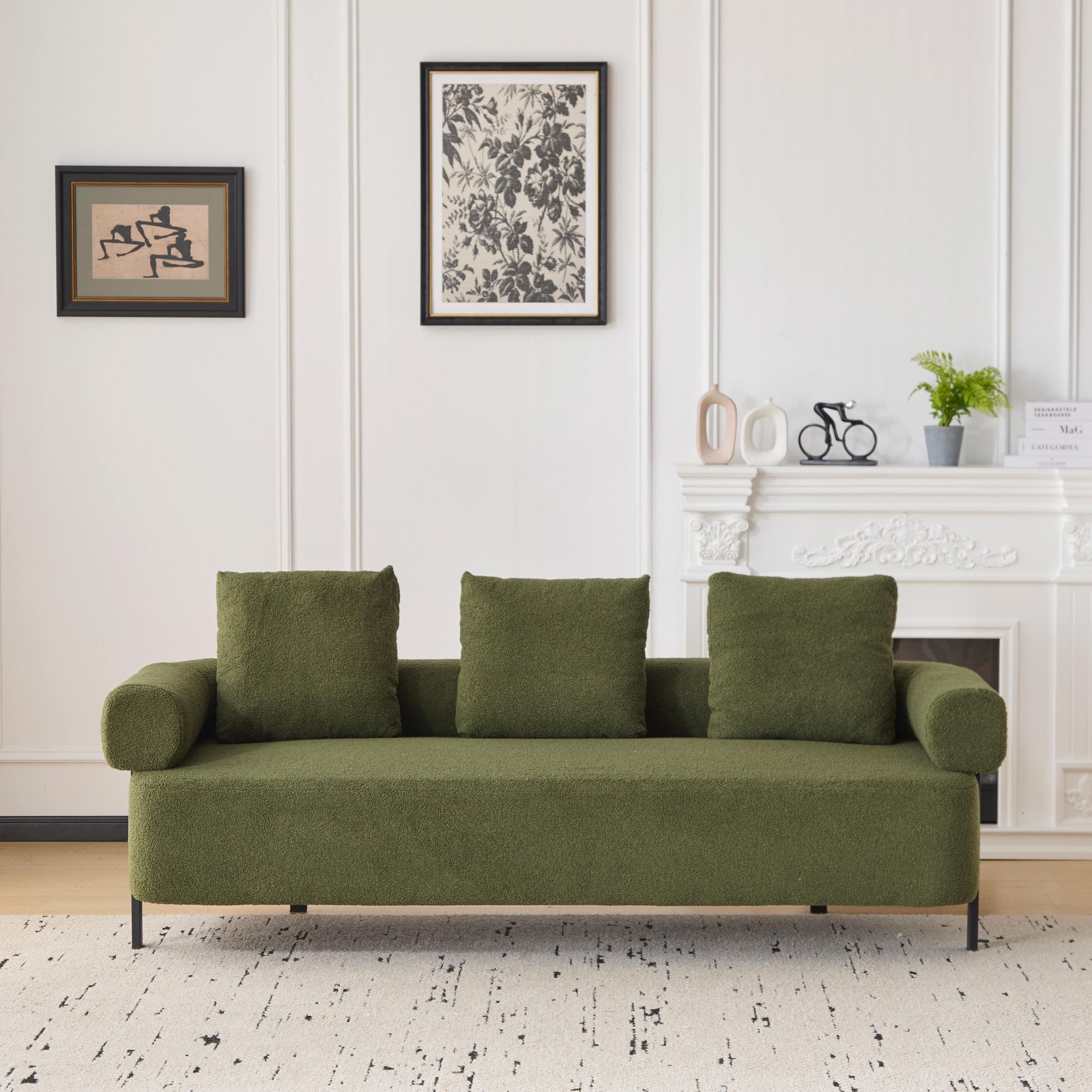 Contemporary 3-Person Upholstered Couch Sofa with 3 Plush Pillows