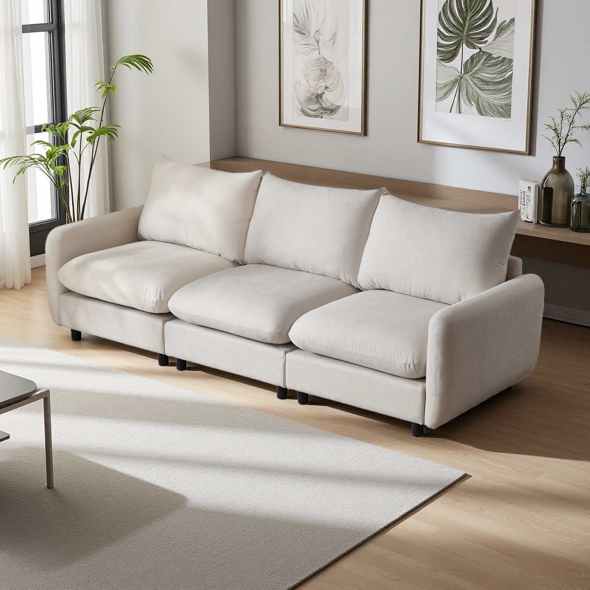 Wider Armrest 3-Seater Modern Sectional Couch, No Ottoman, Double Layer Upholstered Seat Cushion, Breathable Chenille Fabric