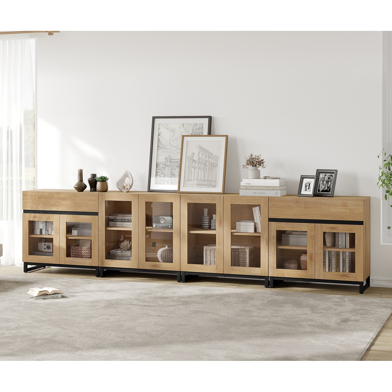 Wood Dresser with 3 Drawers and 2 Cabinets for Bedroom, 106" Wide