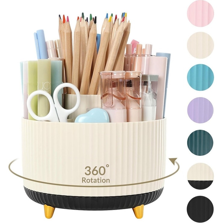 360 Degree Rotating Plastic Desktop Pen Holder with 5 Slots - N/A