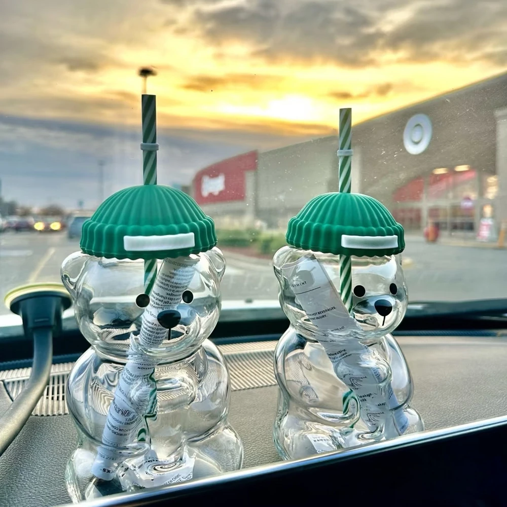 Creative Milk Coffee Water Cups, Transparent Cute Bear Mug With Straw 1pcs