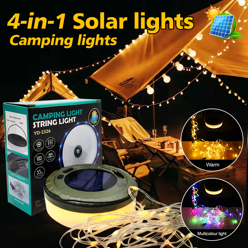 Solar Lights, Outdoor Camping Light, RGB Atmosphere Light, String Light Outdoor Tent, LED Flashlight With Hook camping Light 4pcs