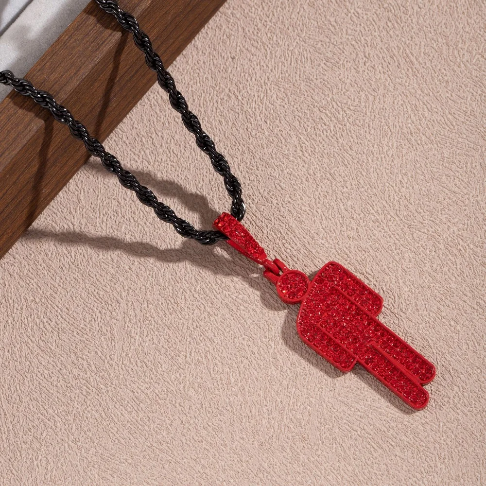 Luxury Hip Hop Necklace, Stainless Steel Skull Head Zircon Couple Pendant, Street Fashion Jewelry With Full Accents rust Red