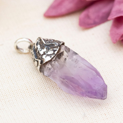 Enigmatic Purple,'Taxco Silver Pendant with Natural Amethyst Gemstone'