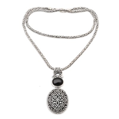 Dark Shield,'Balinese Sterling Necklace with Onyx'