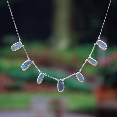 Oceanic Glamour,'Taxco Silver Necklace with Multiple Aquamarine Drop Pendants'