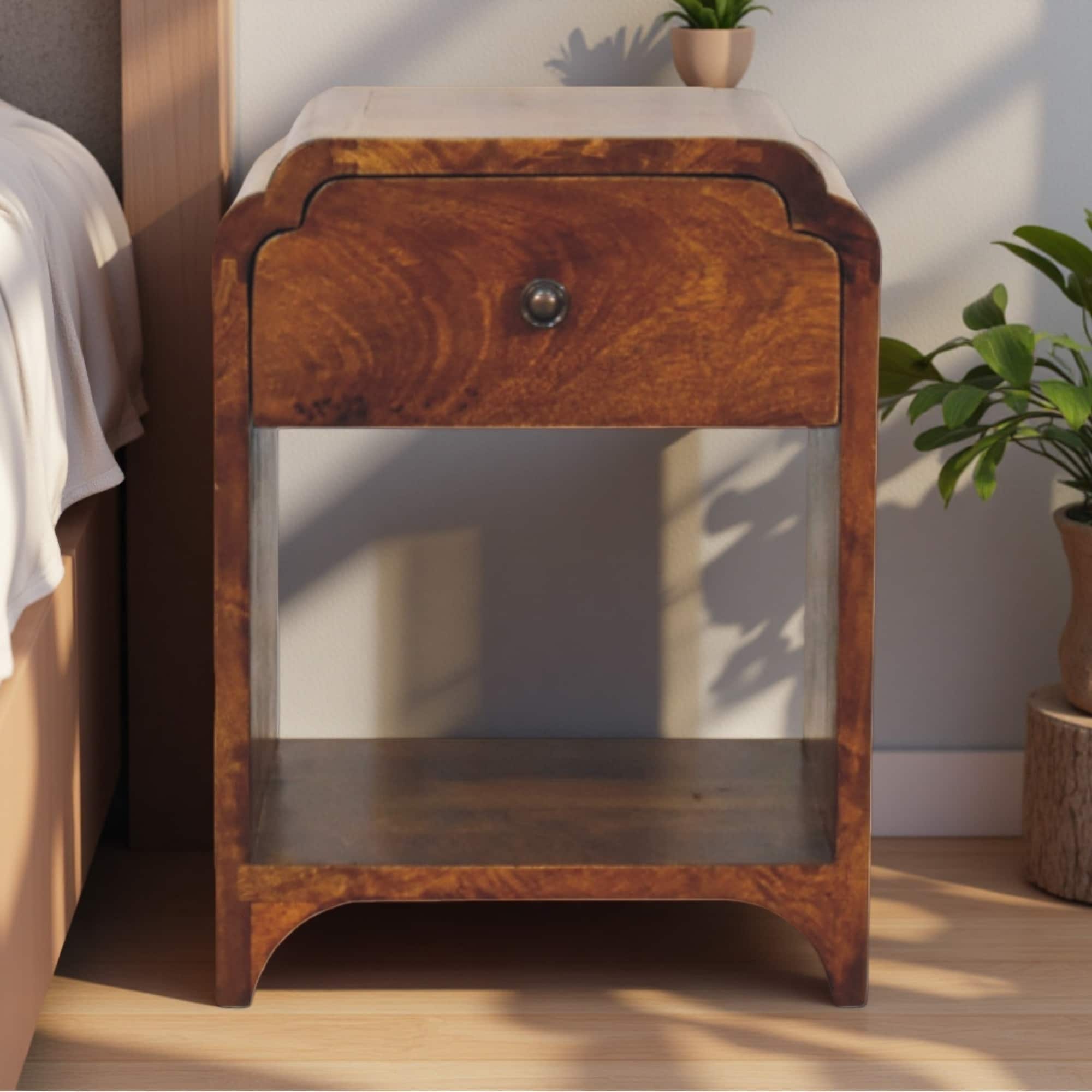11.8"L Solid Mango Wood Mini Nightstand with 1 Drawer and Open Shelf, Handcrafted Bedside Table