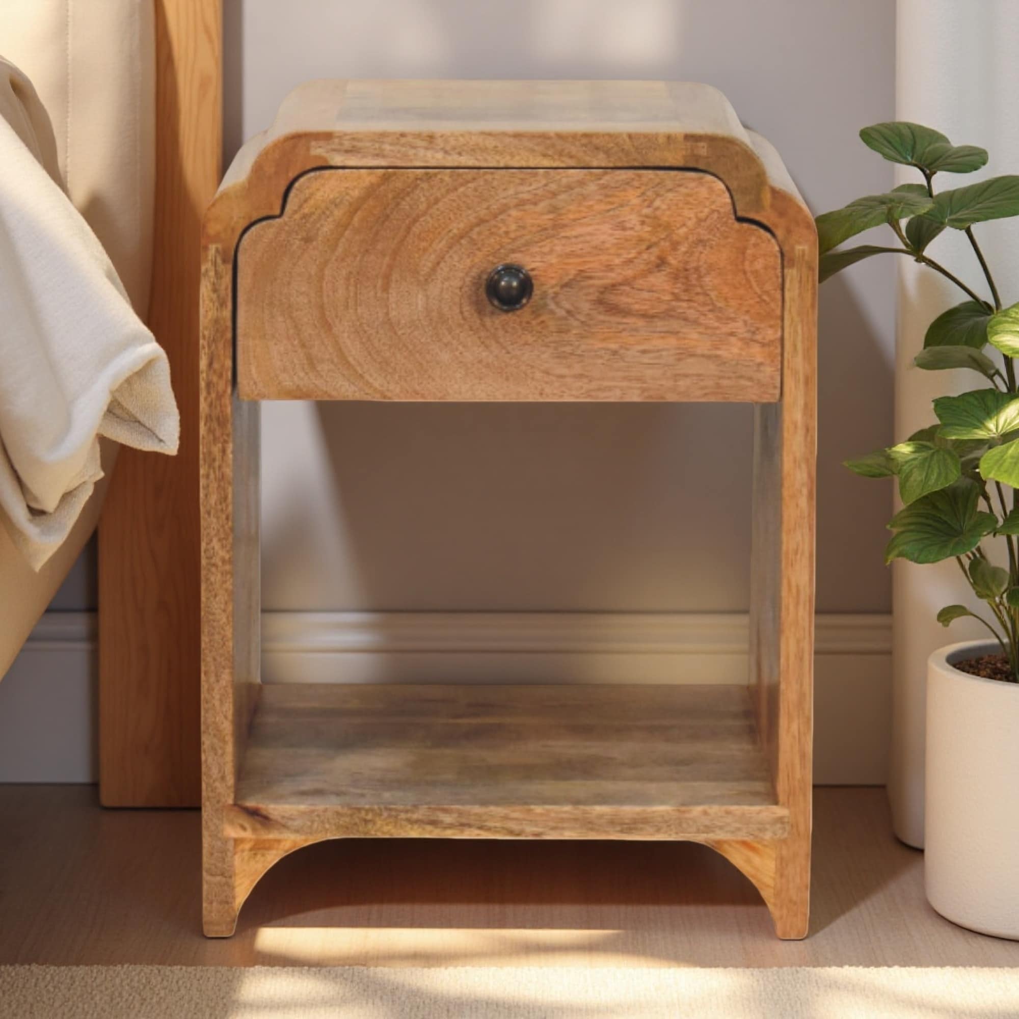Artisan Furniture Solid Wood Large Curved Chestnut Bedside