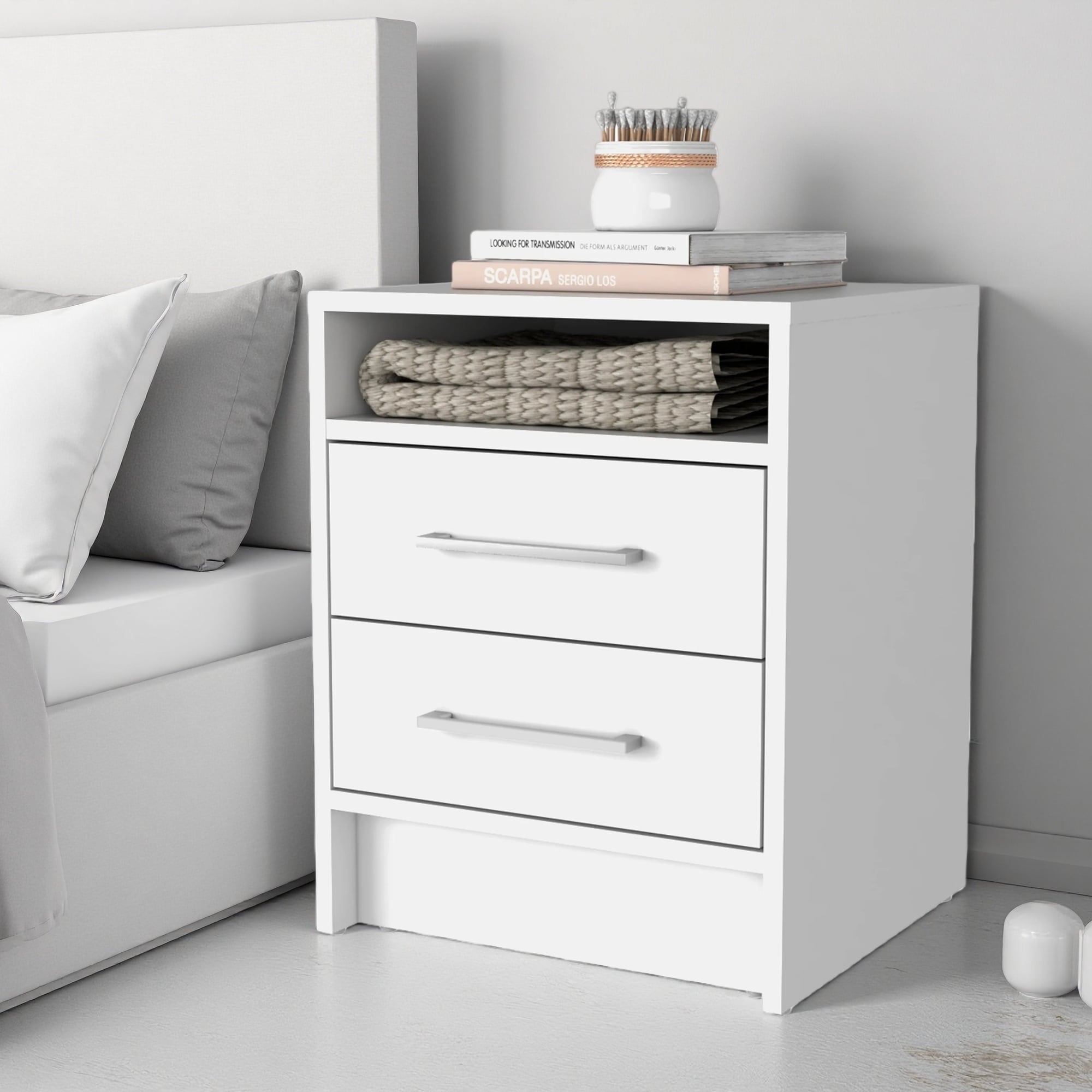 Rectangle Nightstand, Bedside Storage Cabinet with 2 Drawers, Sofa Side Table with Open Shelf, Decorative Table