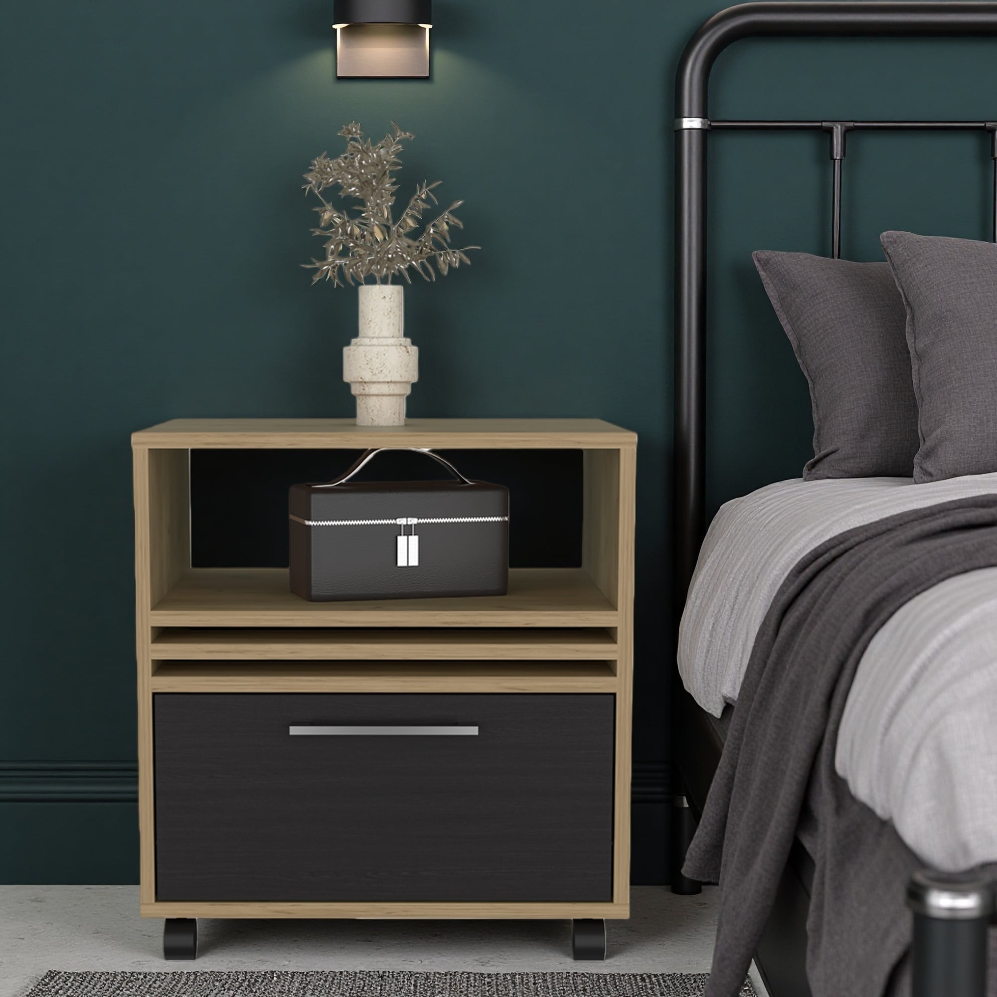 18.9"L Wood Nightstand with Caster Wheels, Contemporary Minimalist Bedside Table