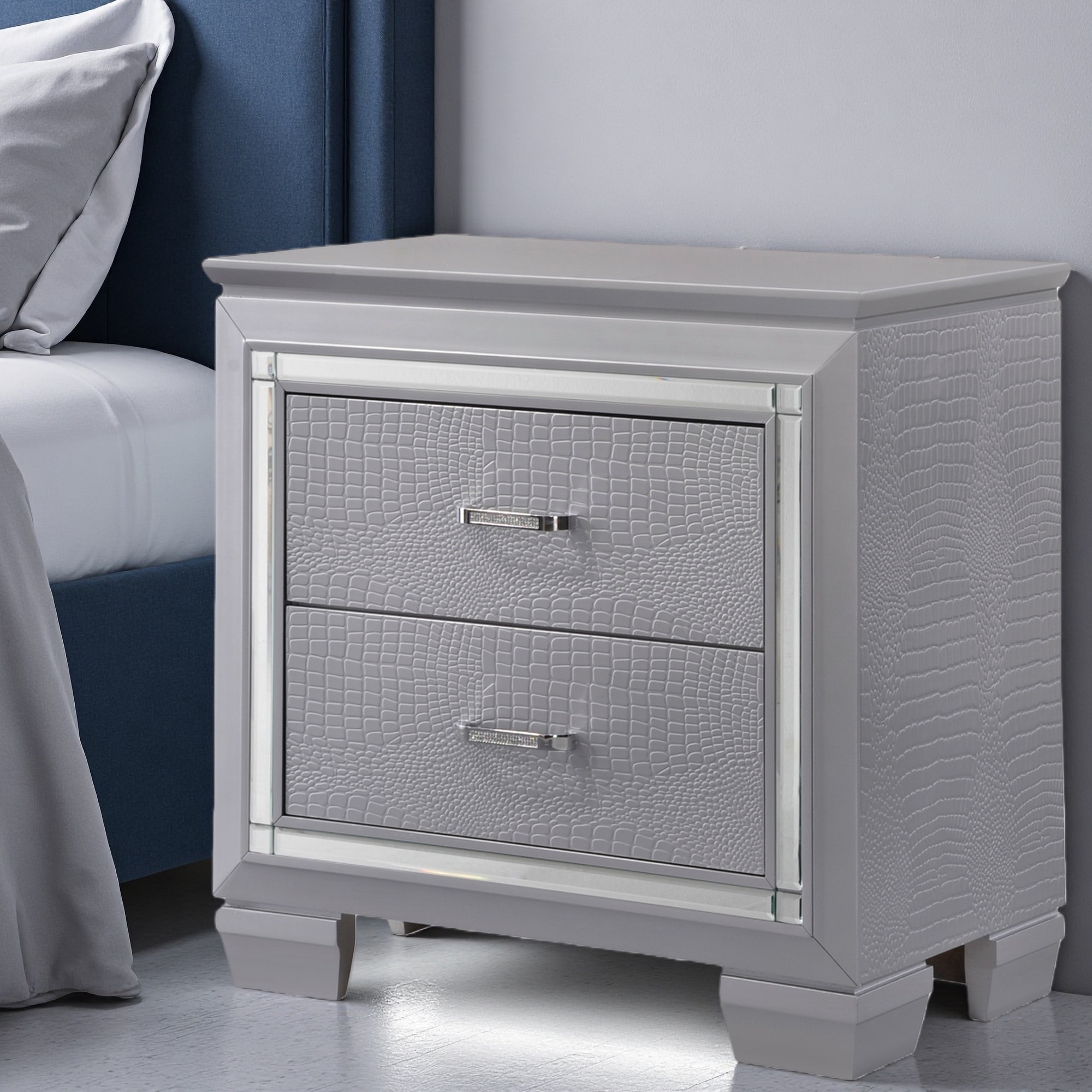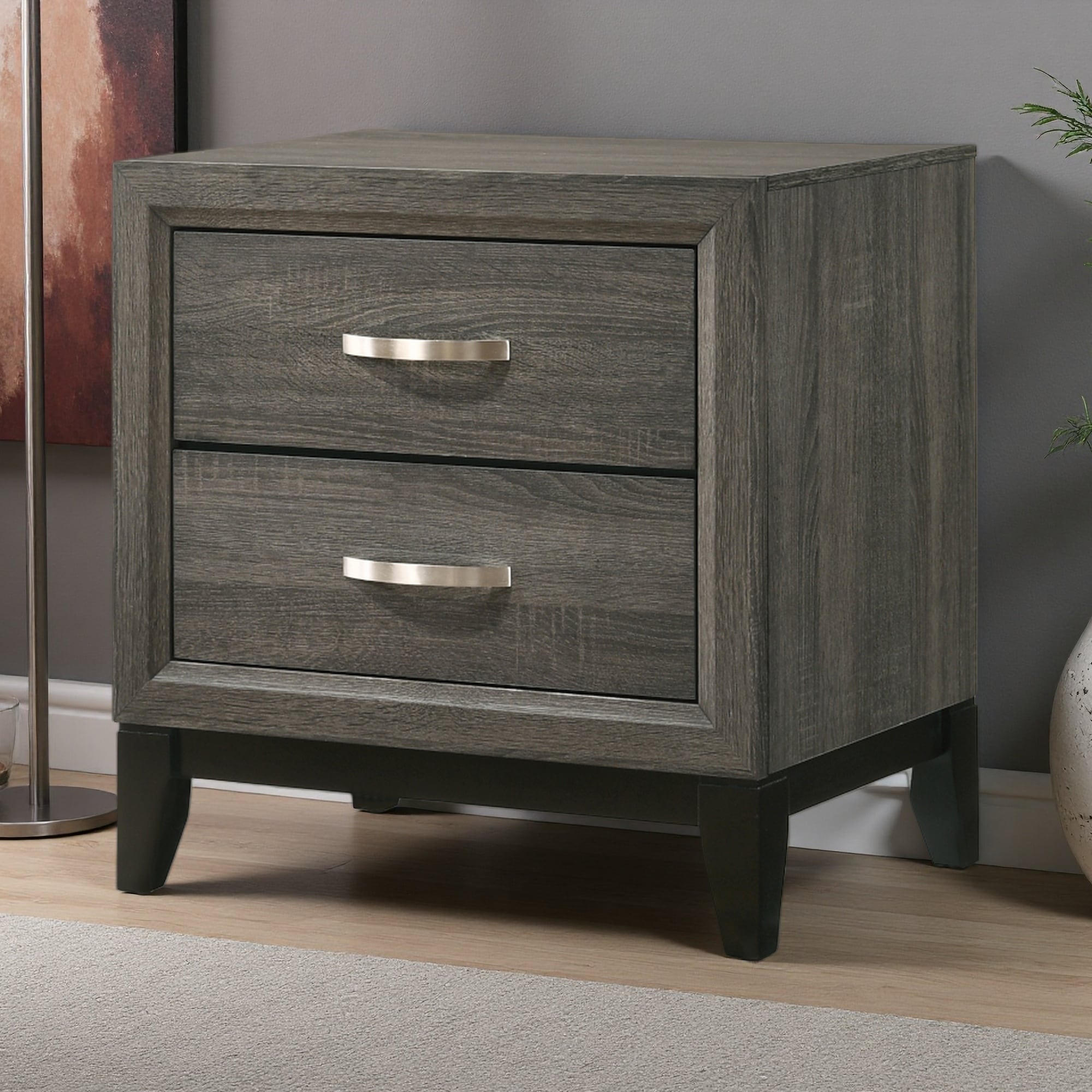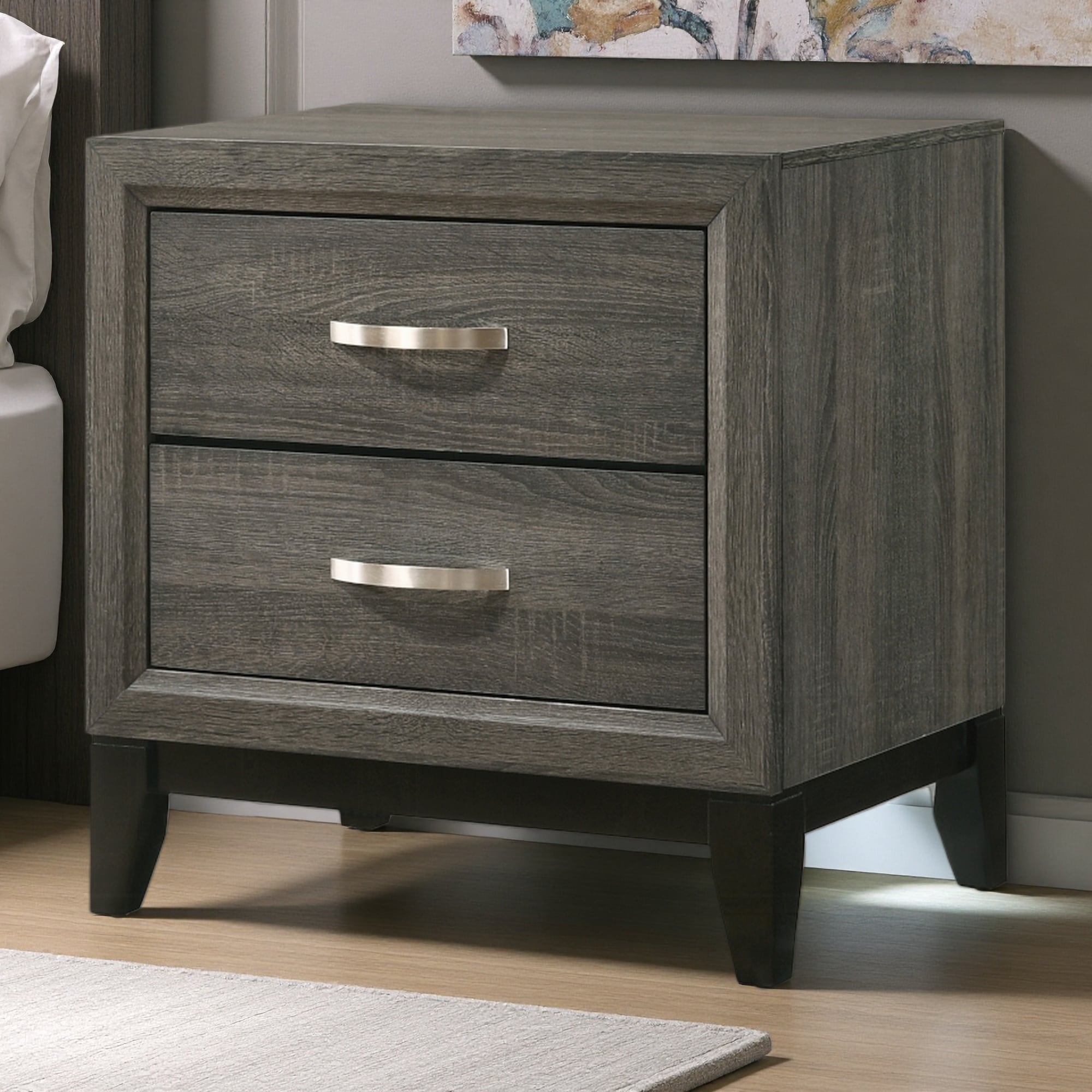 24"L Wood & Composite Transitional 2-Drawer Nightstand Bedroom Furniture with Brushed Nickel Tone Handles
