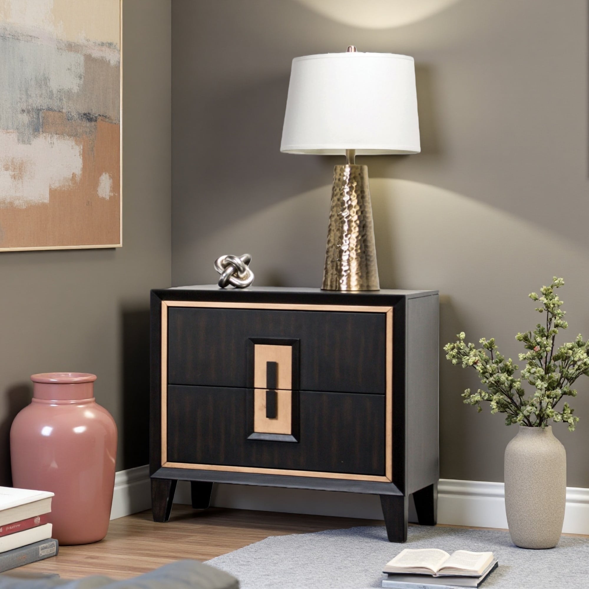 28"L 2-Drawer Nightstand with USB Charging Ports, Felt & Cedar Lined Drawers, Custom Hardware