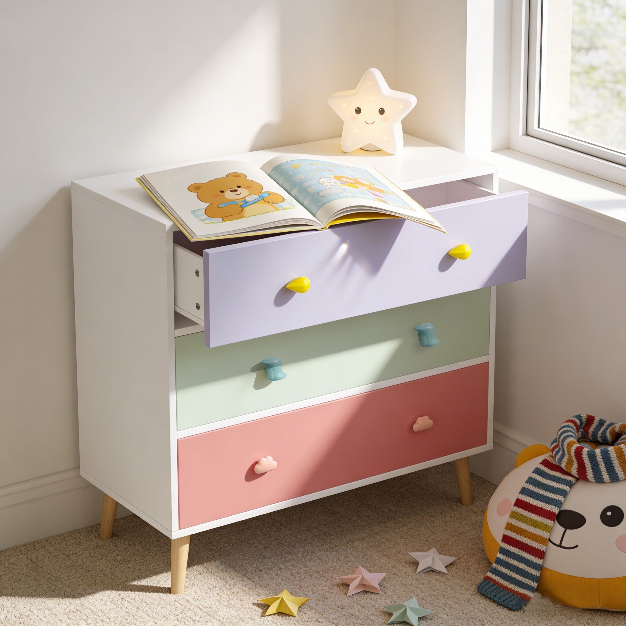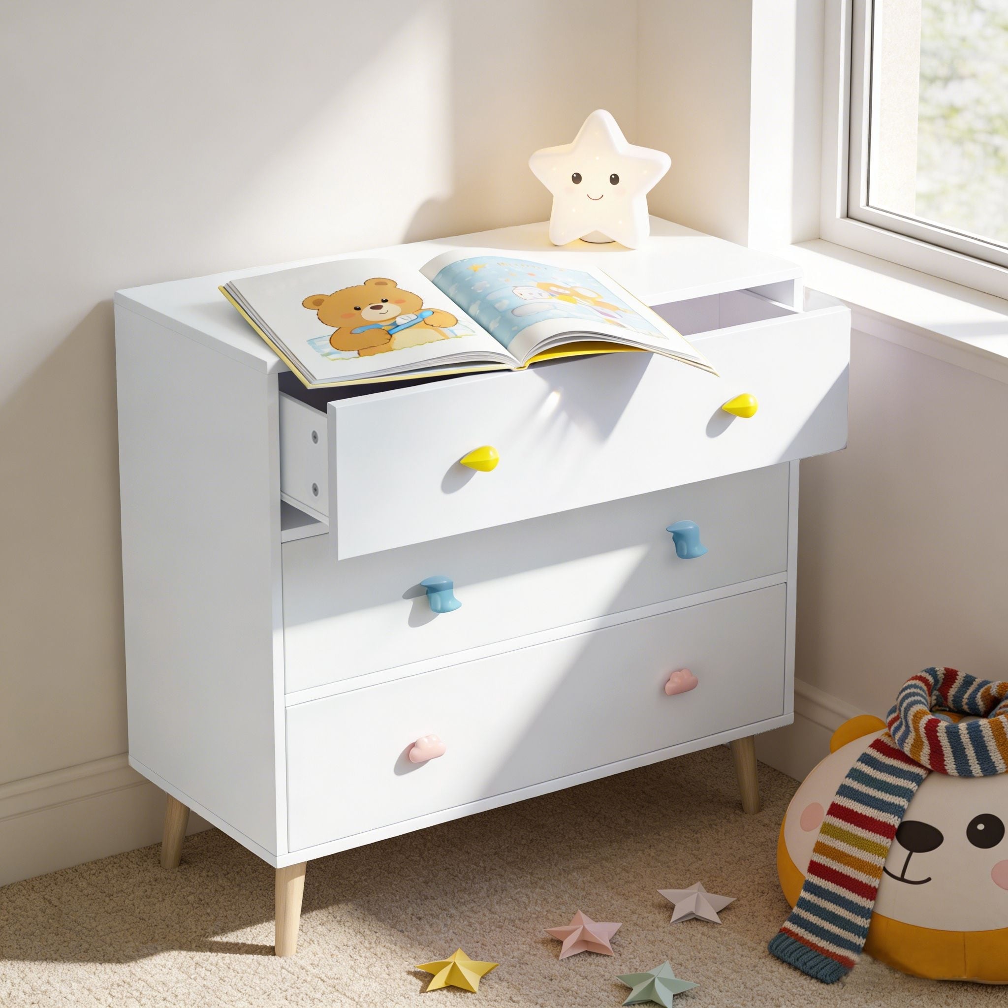Modern Three-Drawer Cartoon-Style Handle Children's Nightstand