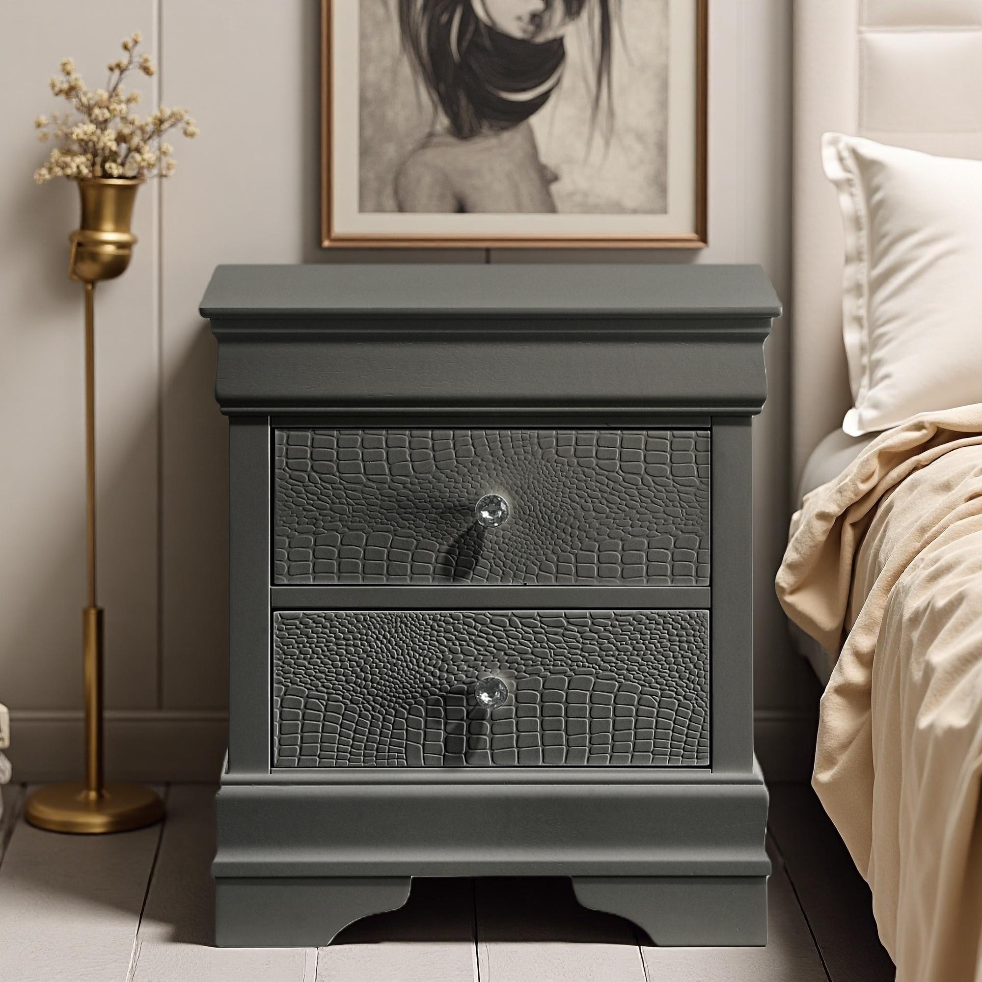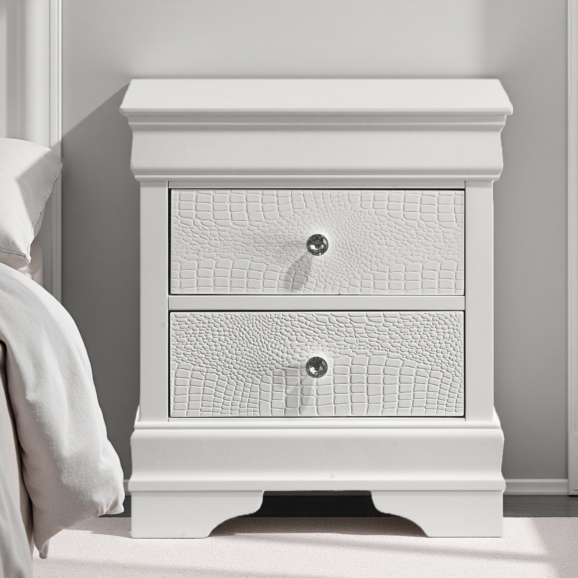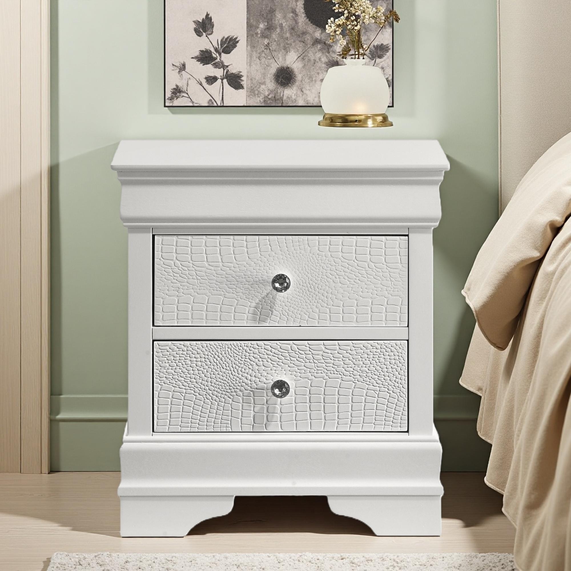 21.65"L Modern Style 2-Drawer Nightstand Made with Wood - Textured Finish with Crystal-Like Knobs