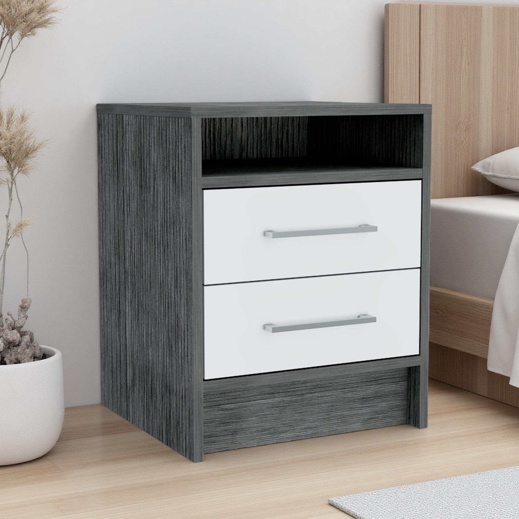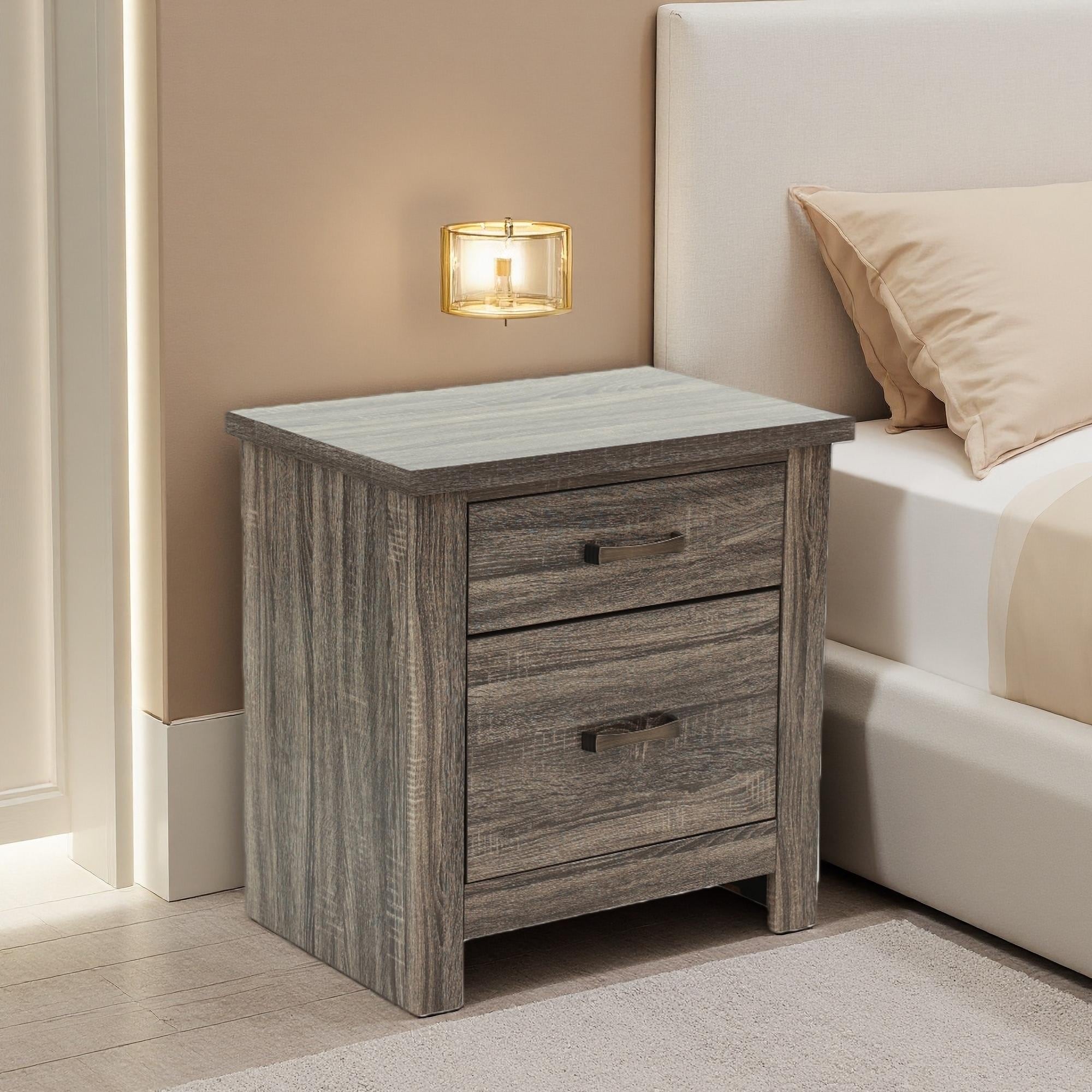 1pc Contemporary Two-Drawers Nightstand Bed Side Cabinet Wooden Furniture
