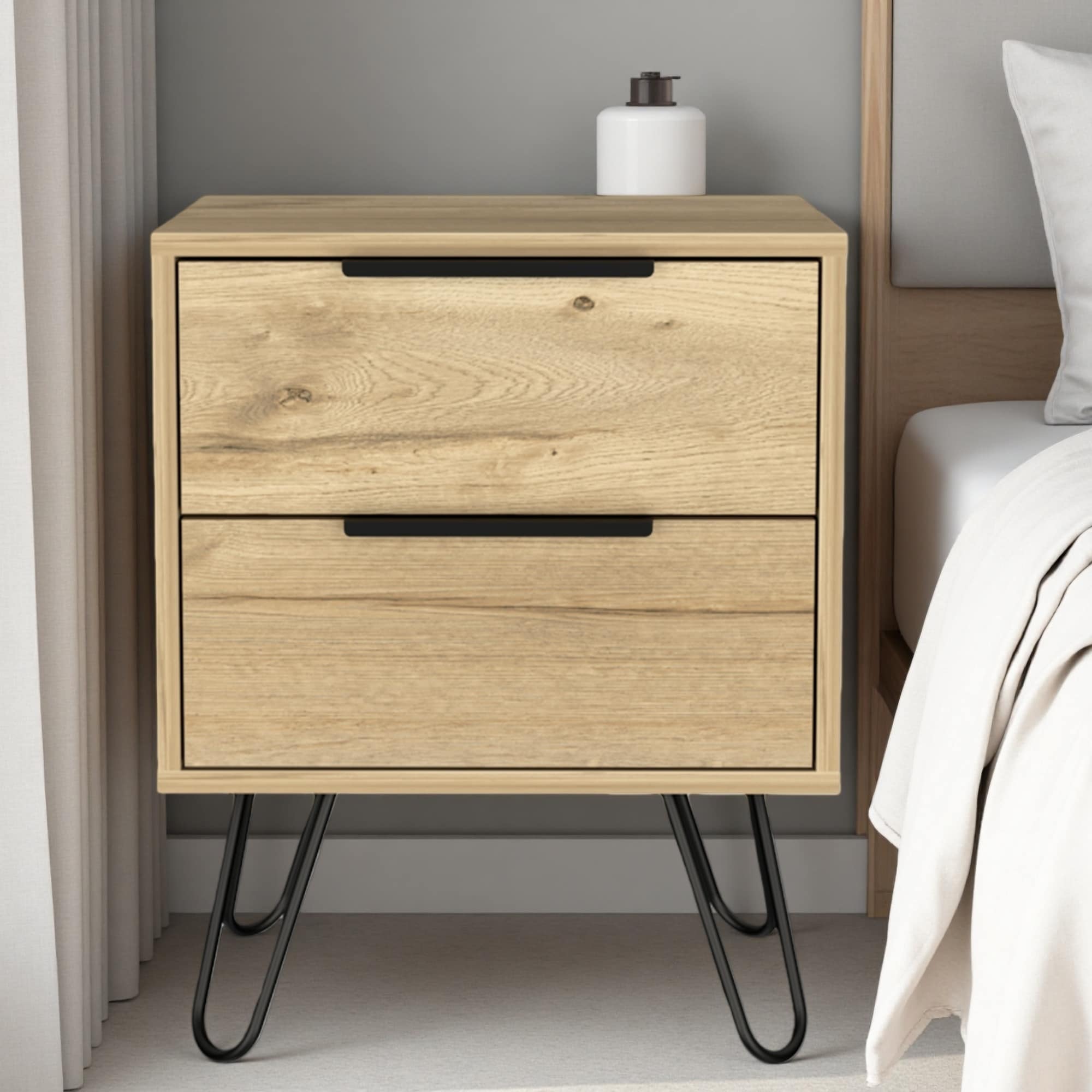 17.71"L Wood Nightstand with Two Drawers, Superior Top & Four Hairpin Legs, Modern Compact Design