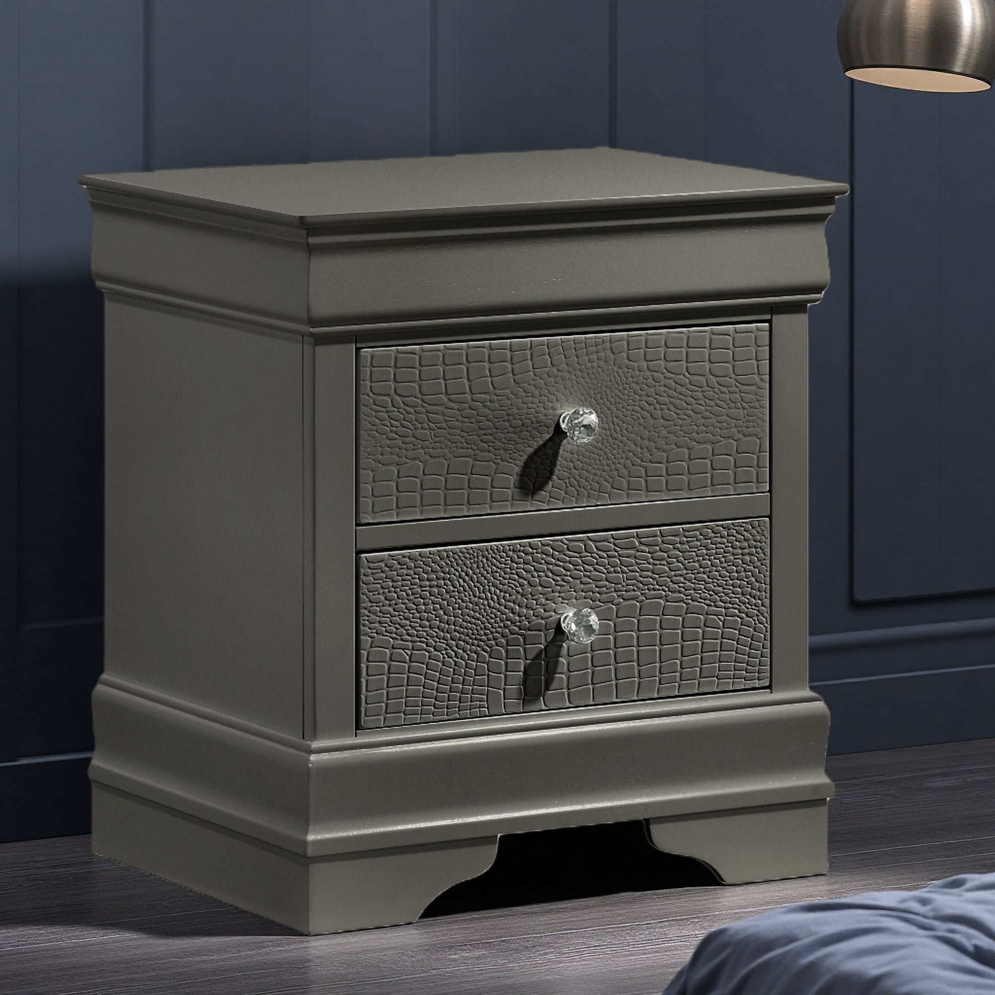 21.65"L Modern Style 2-Drawer Nightstand Made with Wood - Textured Finish with Crystal-Like Knobs