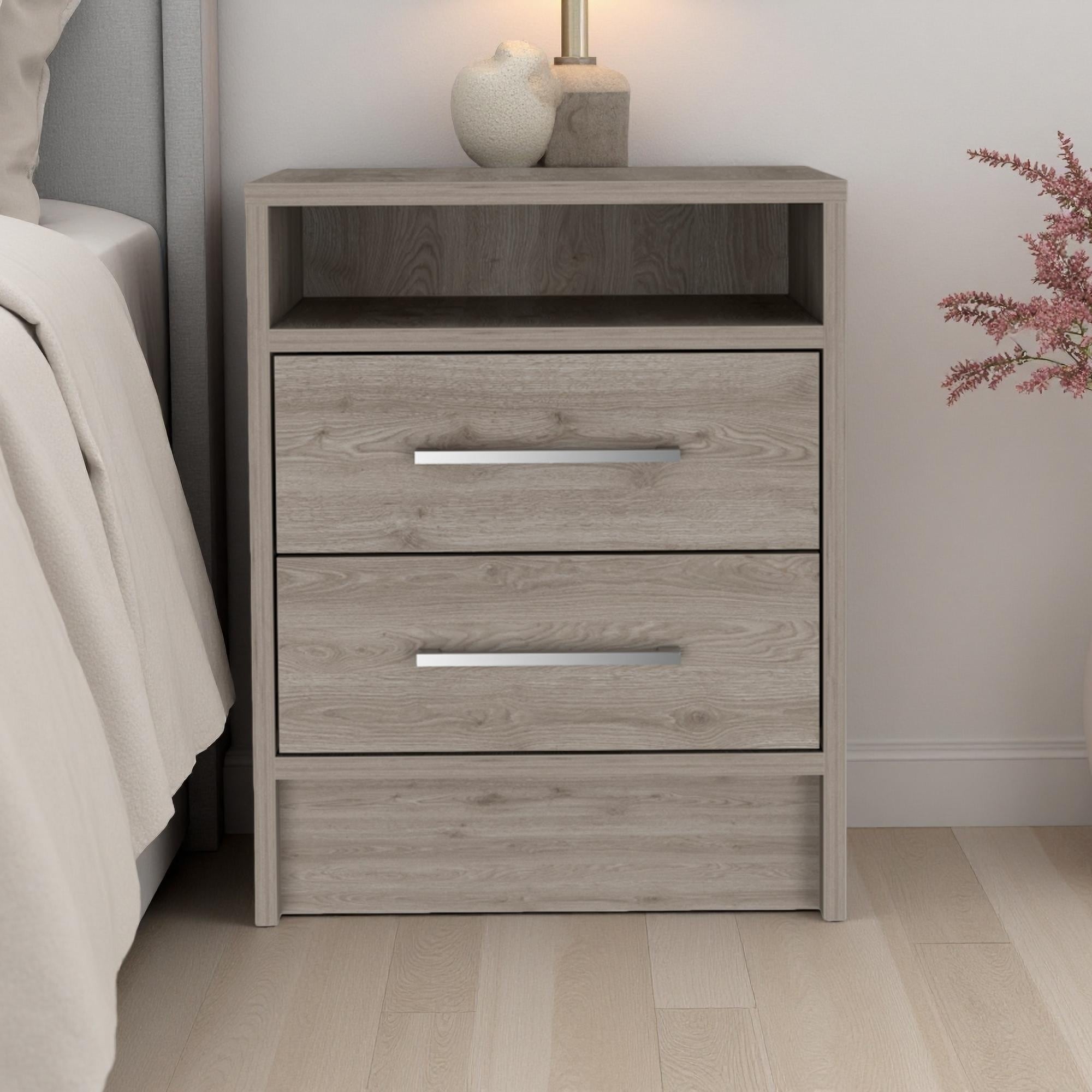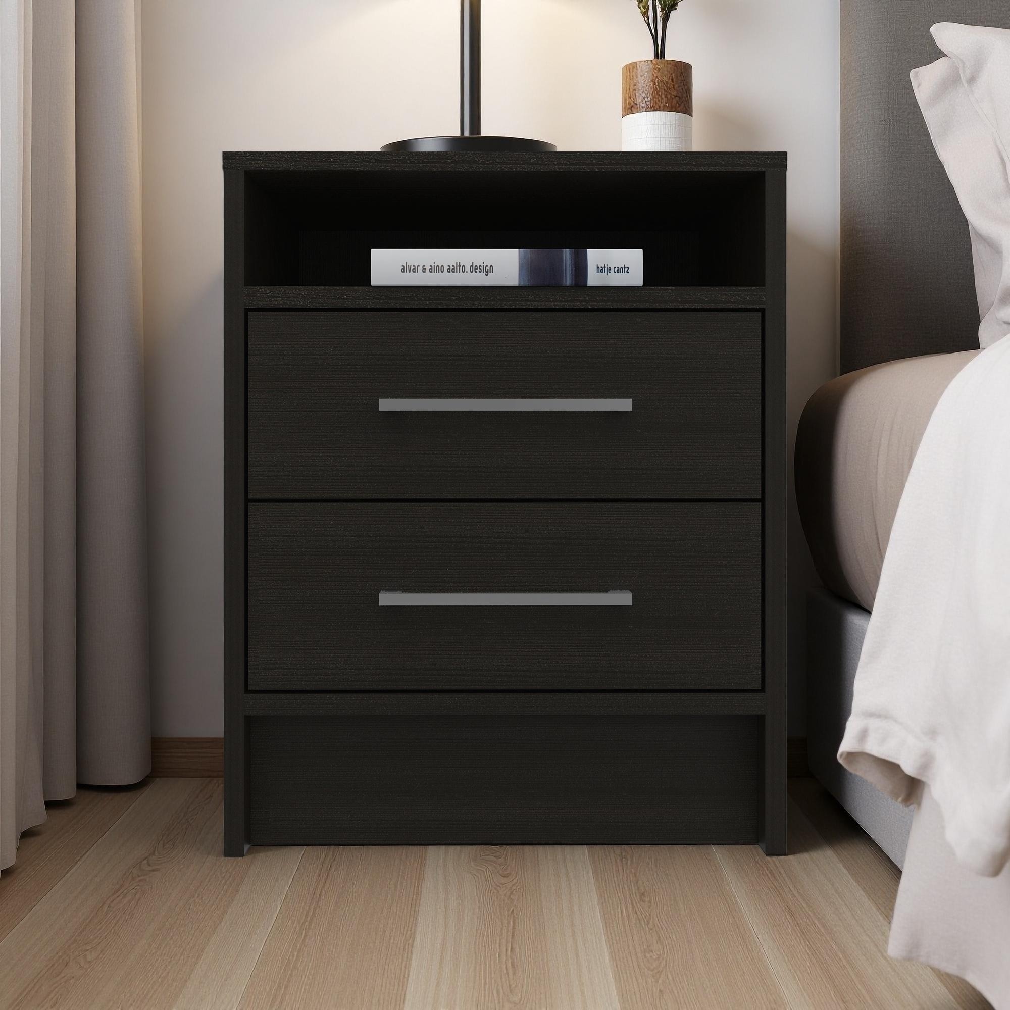 15.7"L Manufactured Wood 2-Drawer Nightstand with Shelf, Semi-Open Top Shelf & Durable Metal Hardware
