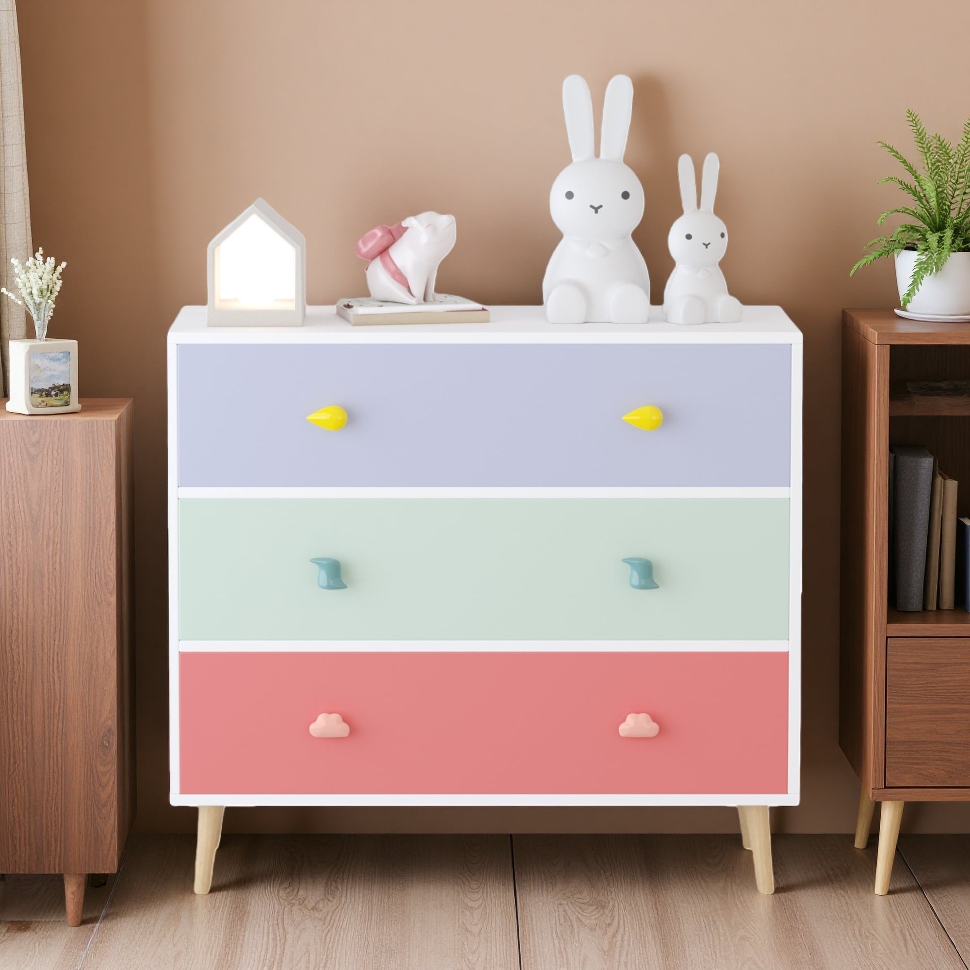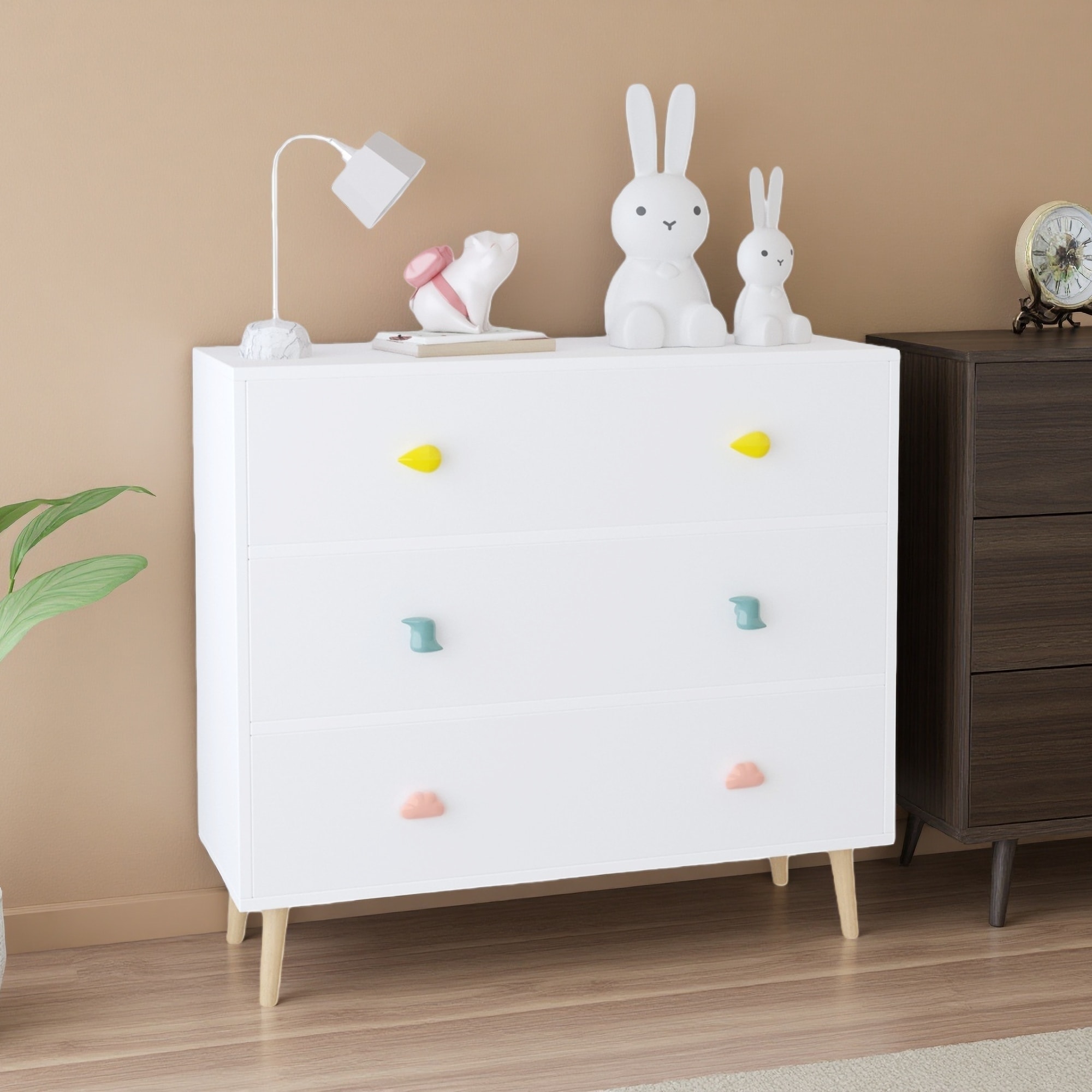 31.5"L MDF & Solid Wood 3-Drawer Kids Dresser, Toddler Nightstand & Storage Cabinet with Anti-Tip Design for Nursery, Bedroom