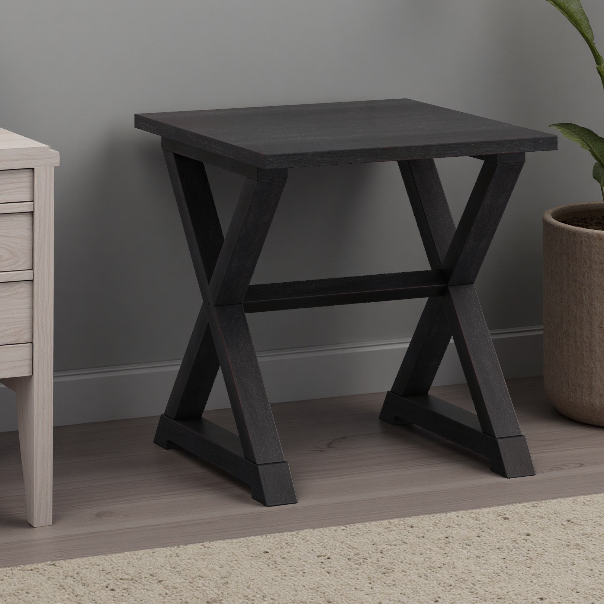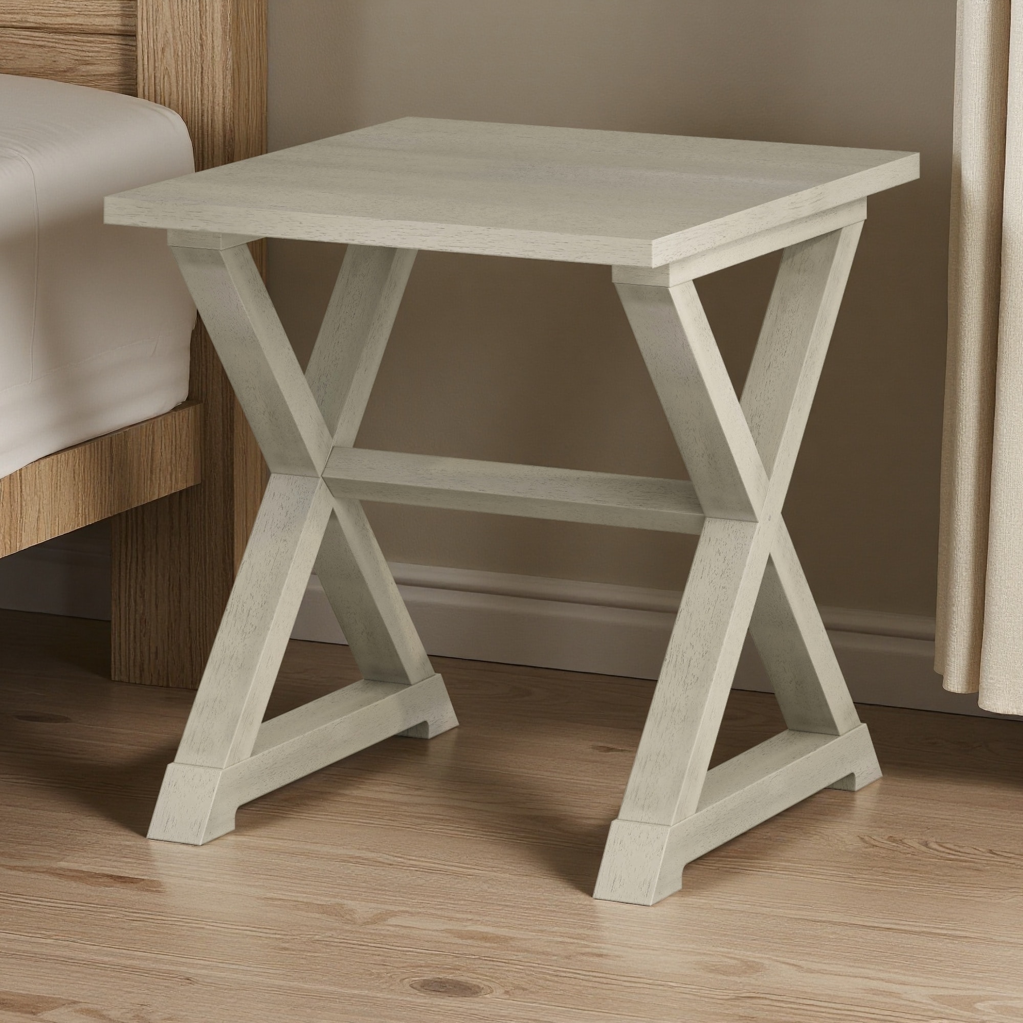 22"L Square Accent End Table with Sturdy Trestle Base, Spacious Top, Versatile Side Table & Nightstand for Living Room Bedroom