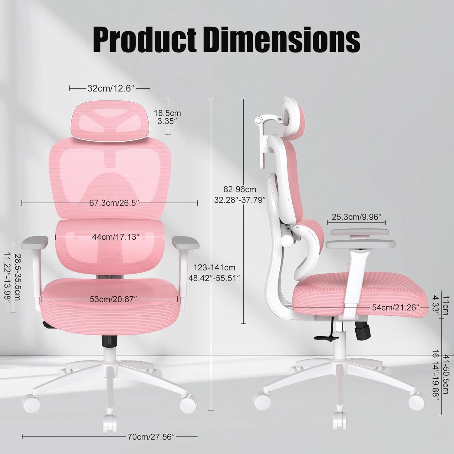 Ergonomic Office Chair with Adjustable Lumbar Support, 3D Arms, Headrest, and Reclining Function