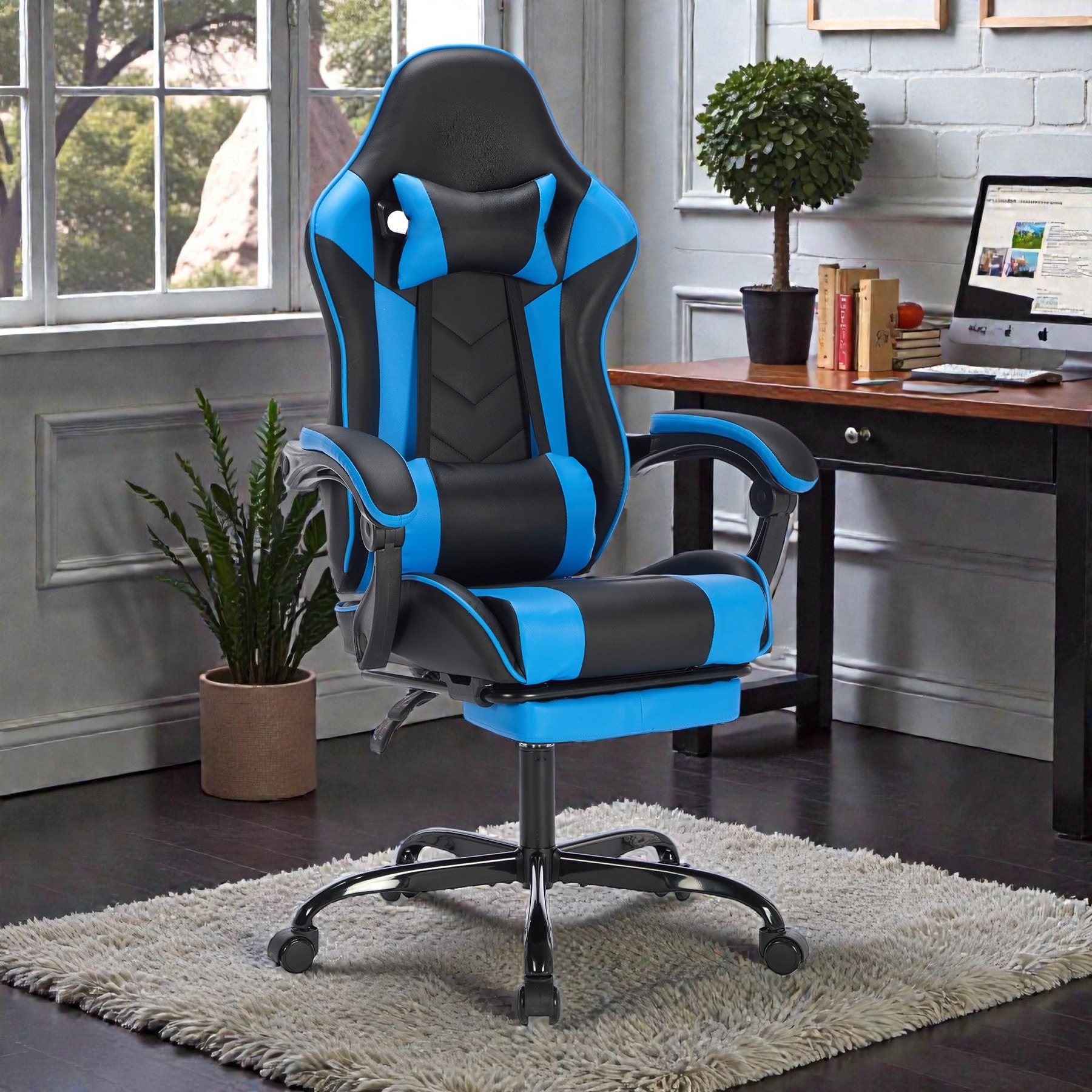 Ergonomic Gaming Chair with Footrest, Massage Lumbar Support, Adjustable Recline 90-135°, PU Leather High-Back Computer Chair