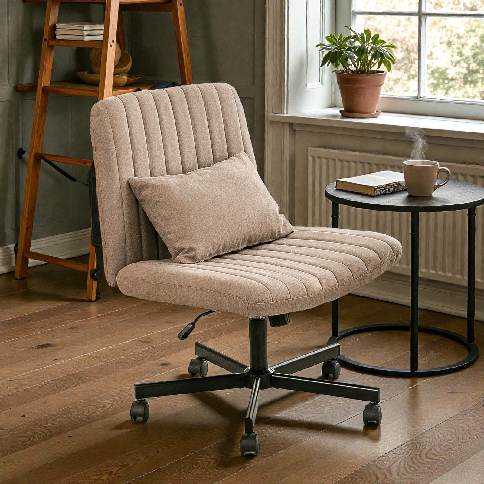 Linen Office Chair with Criss Cross Metal Base, Adjustable Height, 360° Swivel, Memory Foam Cushion & Ergonomic Tilt Design