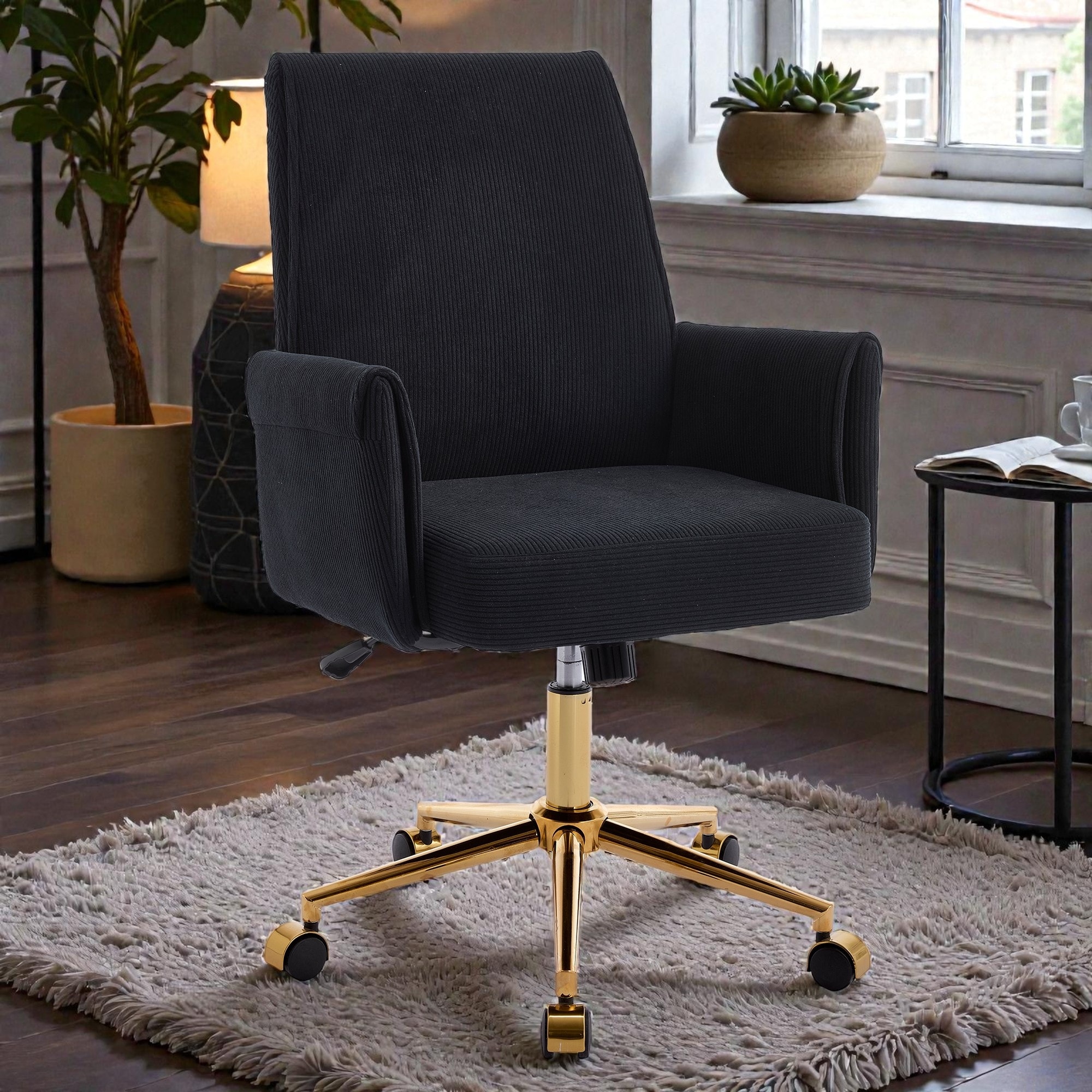 Ergonomic Office Chair with Gold Plated Metal Base, Memory Foam Cushion, Lumbar Support and Armrests for Comfortable Seating