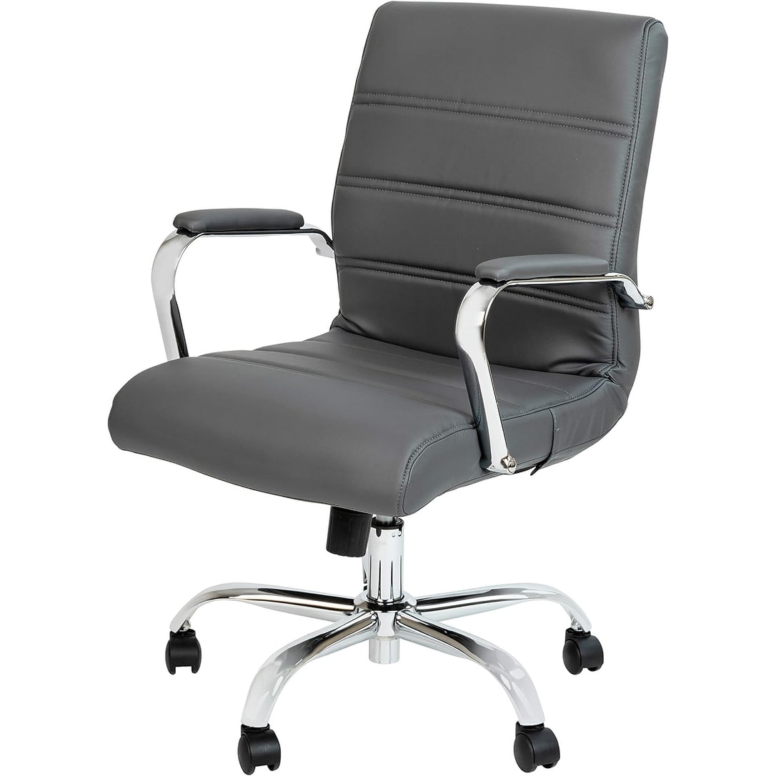 Mid-Back Swivel Office Chair with Padded Seat, Armrests, and Adjustable Height, Gray/Chrome
