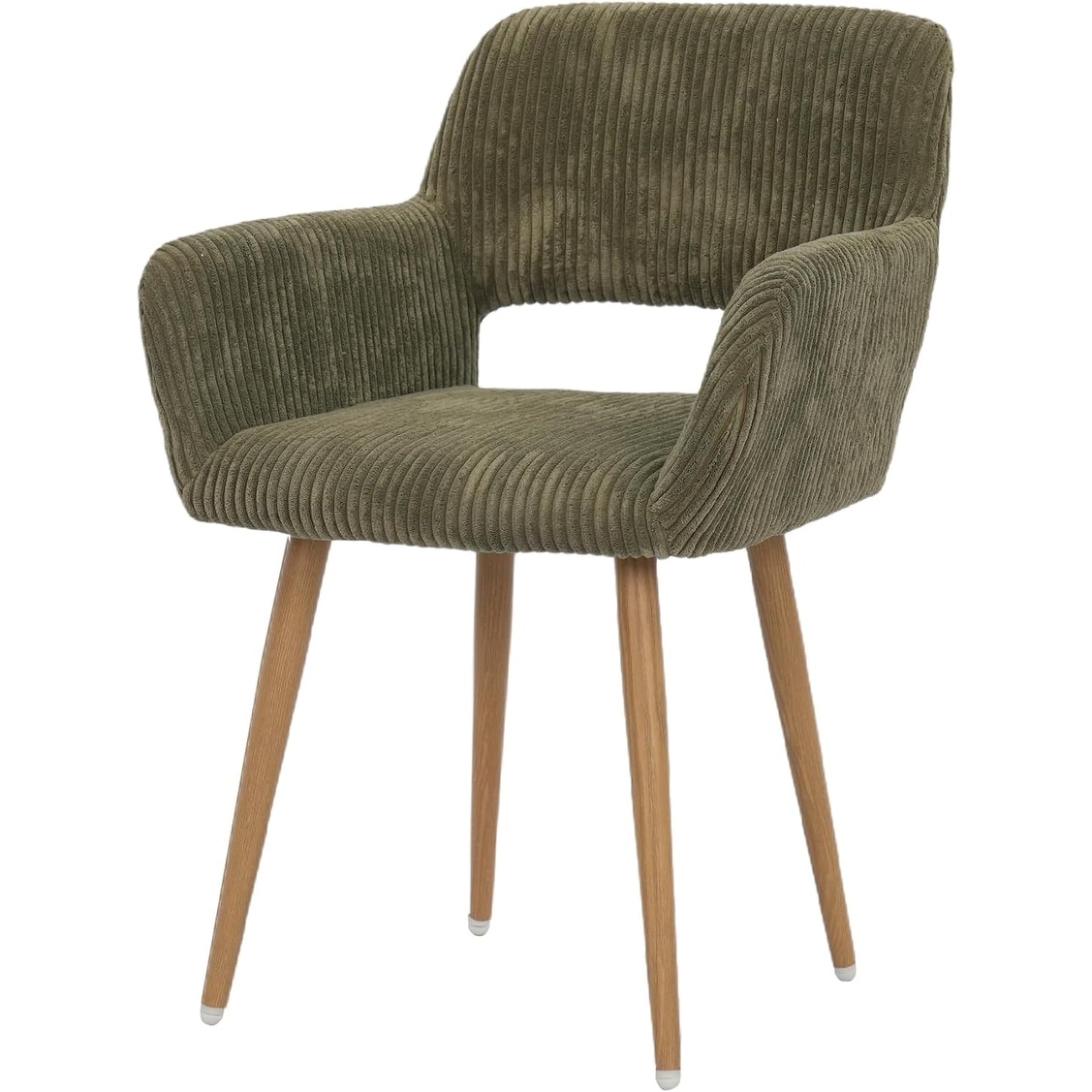 Corduroy Dining Chair with Wood Grain Metal Legs, Fluffy Vanity Chair for Living Room Bedroom Office, Green