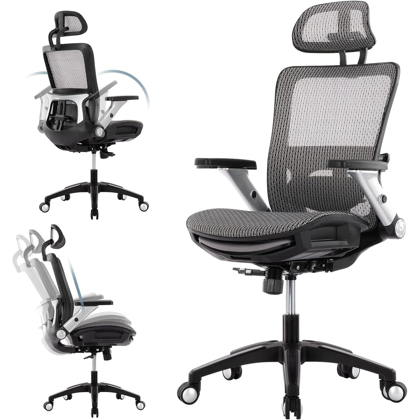 Ergonomic Office Chair with Adjustable Lumbar Support, Flip-up Armrests, and 360° Swivel