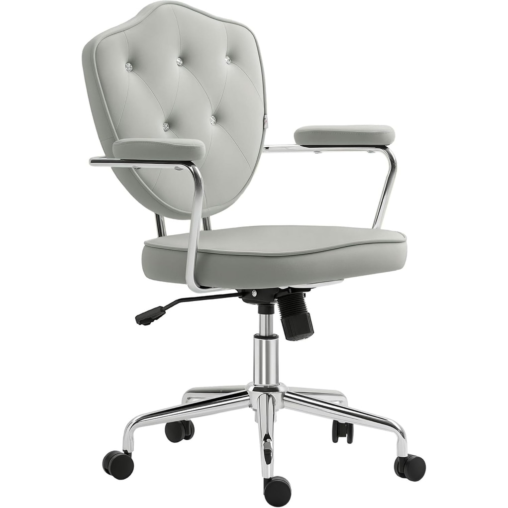 Cute Home Office Chair with Velvet-Feel Fabric, Adjustable Height and Tilt, Swivel Wheels, Gray