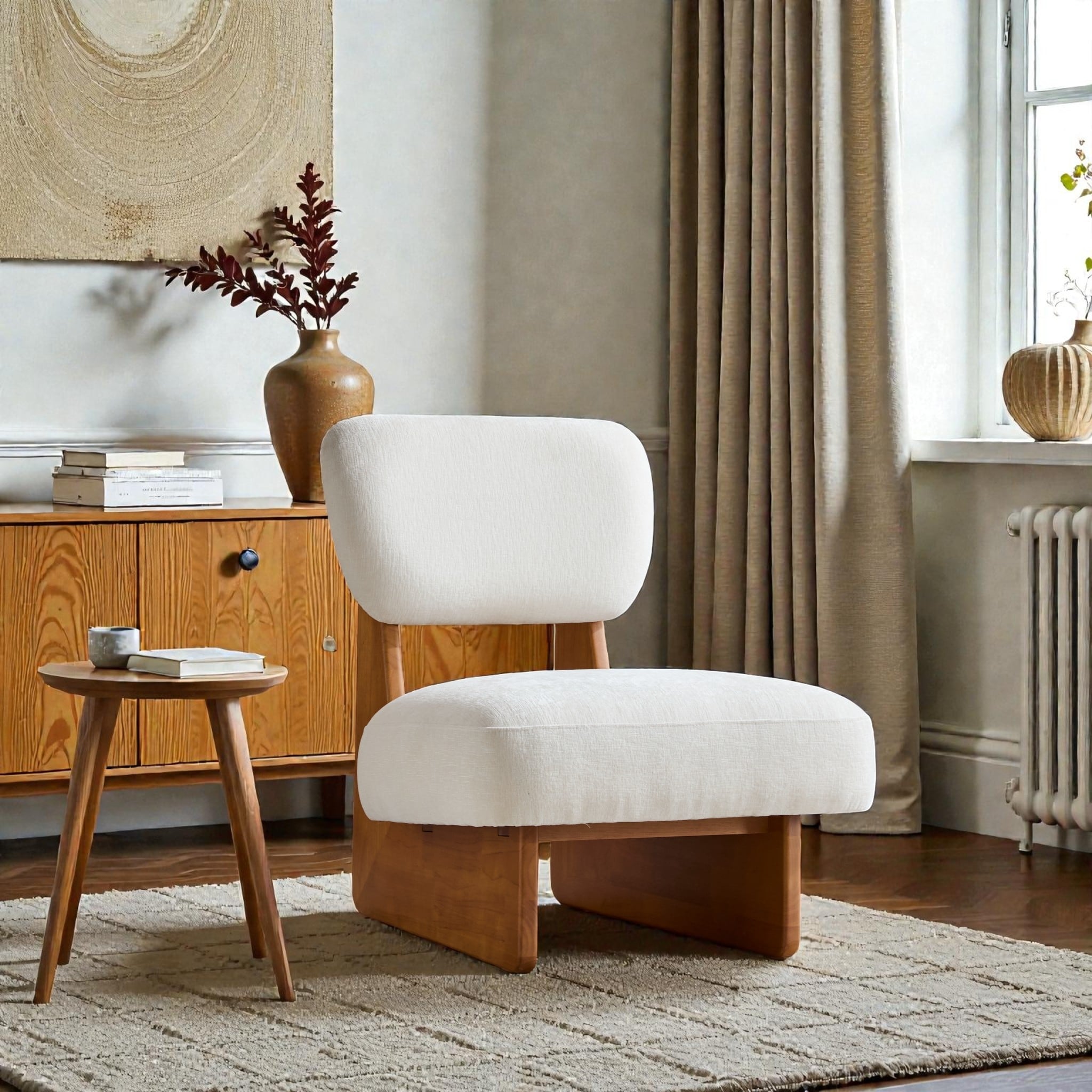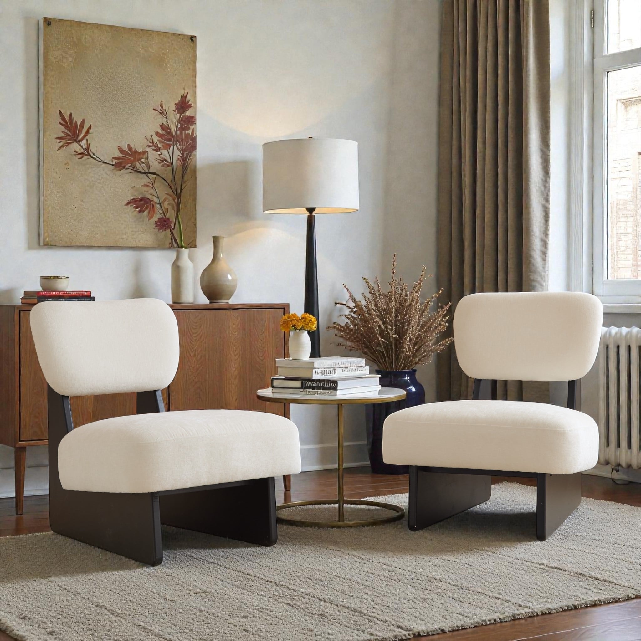 Set of 2 Lounge Accent Chairs with Polyester Upholstery and Wood Base, Minimalist Seating for Living Room Bedroom Office